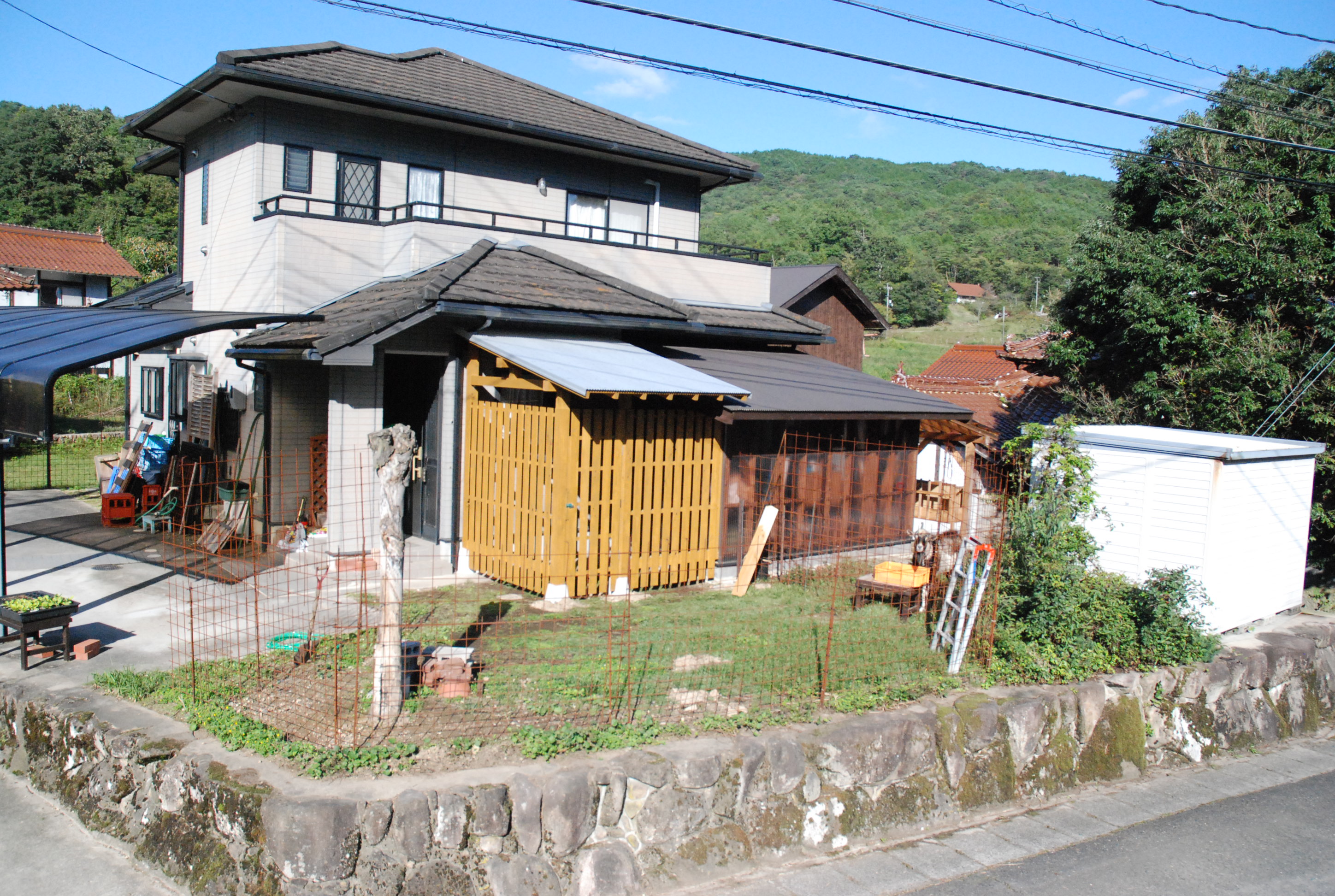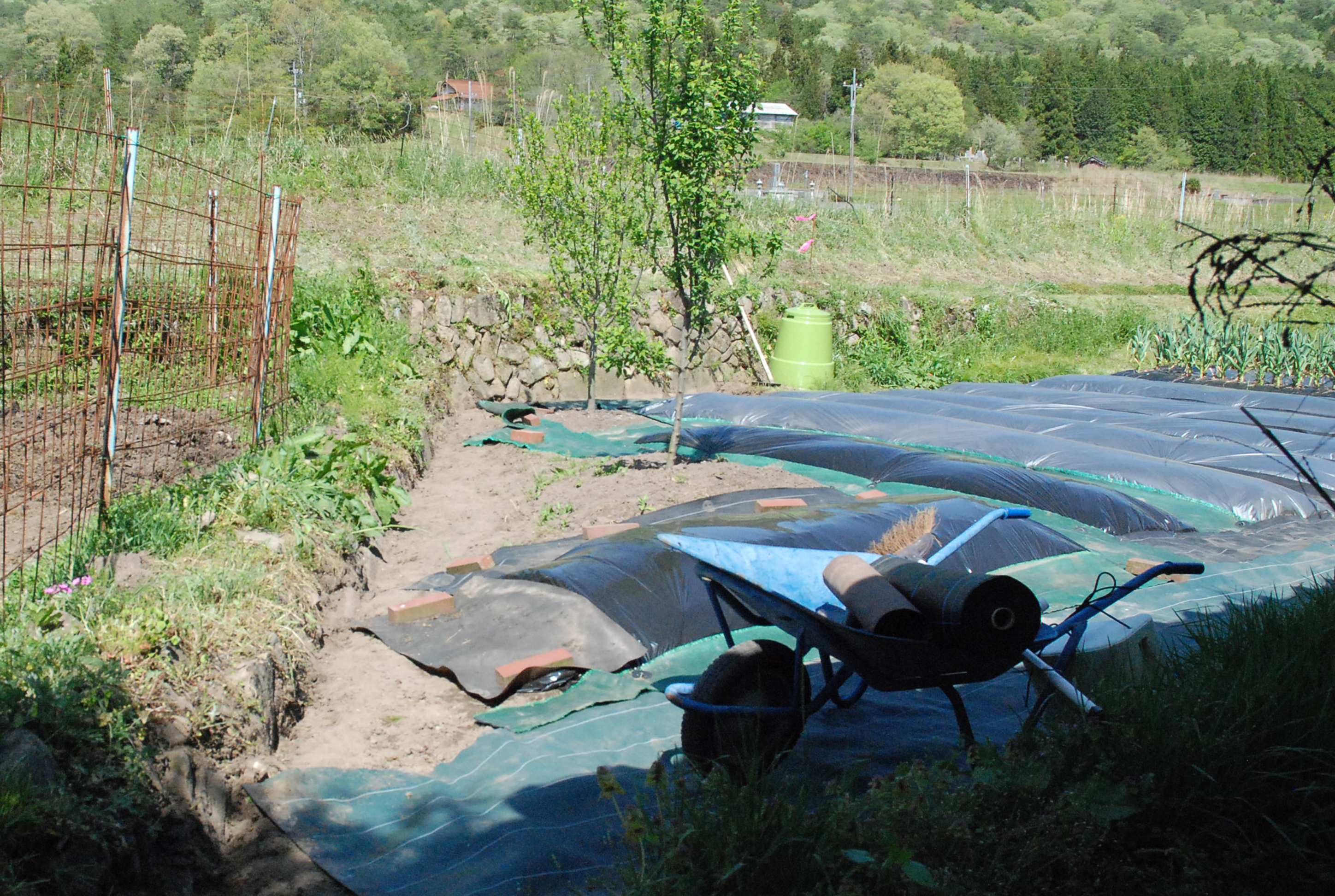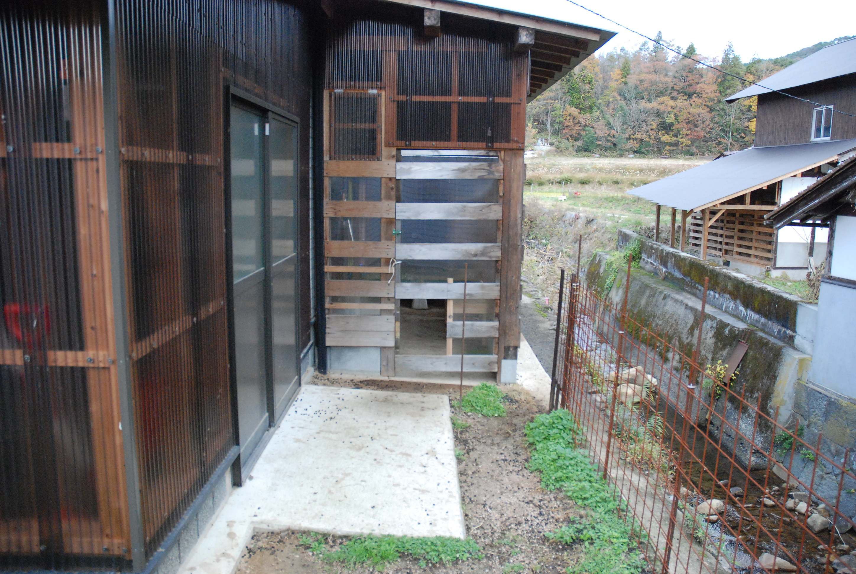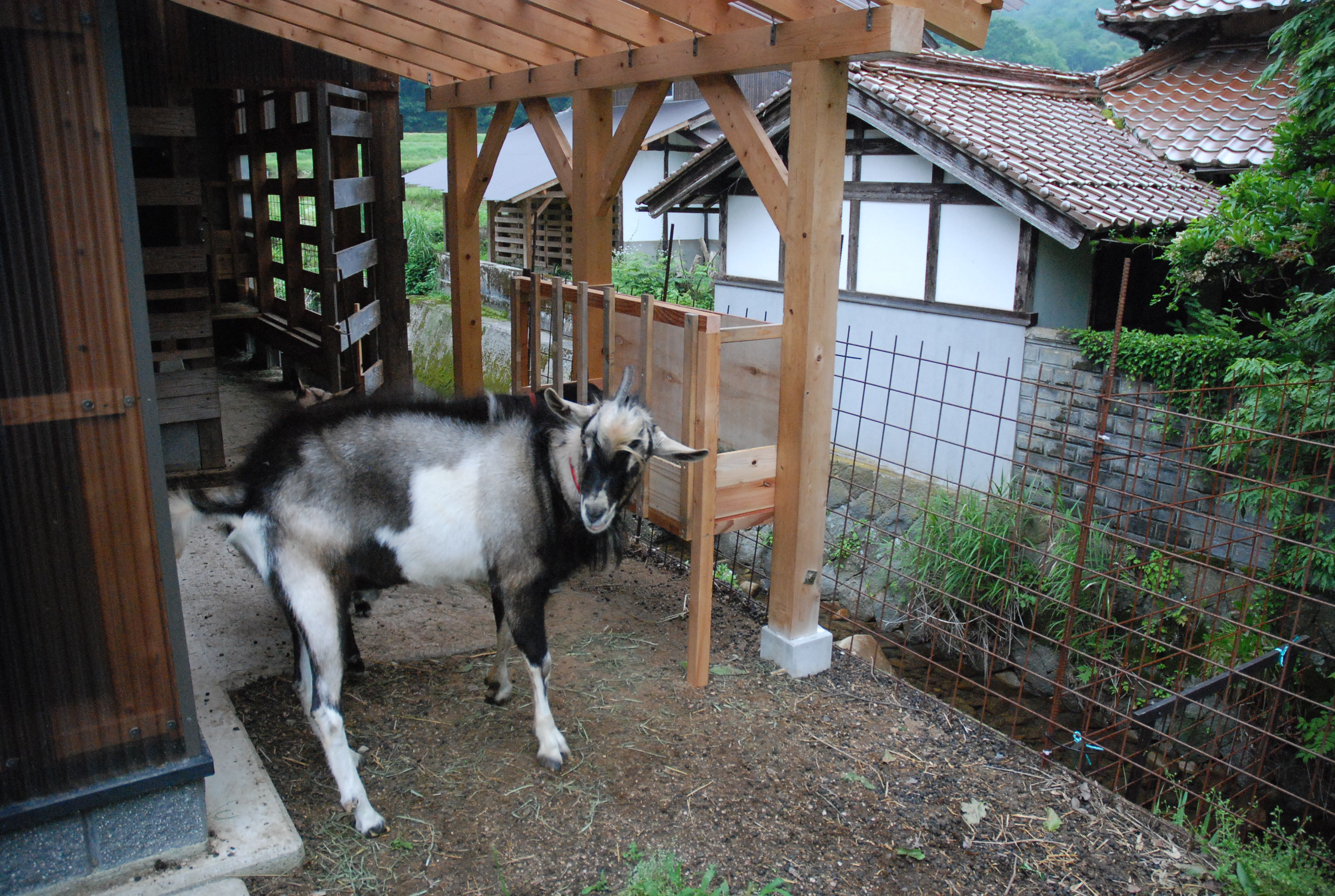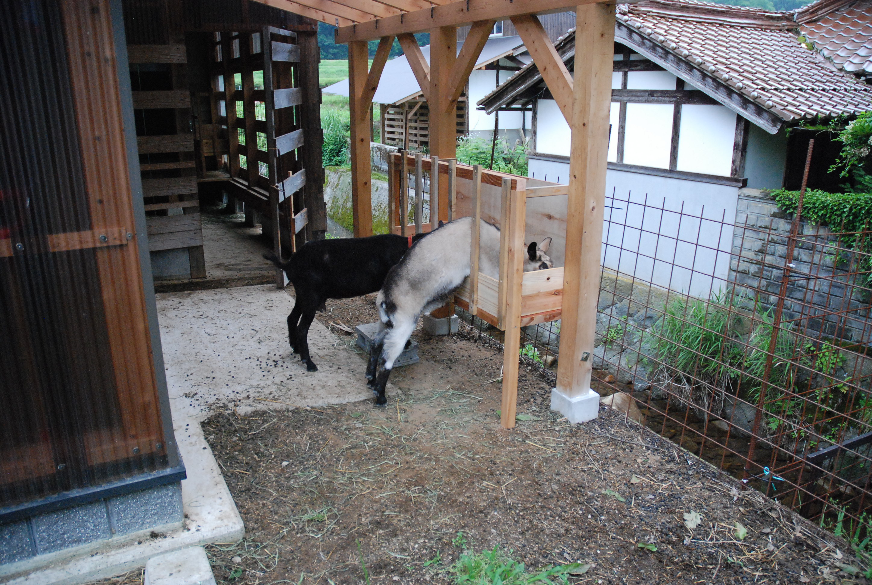 山羊の堆肥置き場が完成しました。島根との県境に近い我が地域の気候は半分以上山陰なので,雨が続き山羊舎はシッコだらけ。畑も雨の中。
