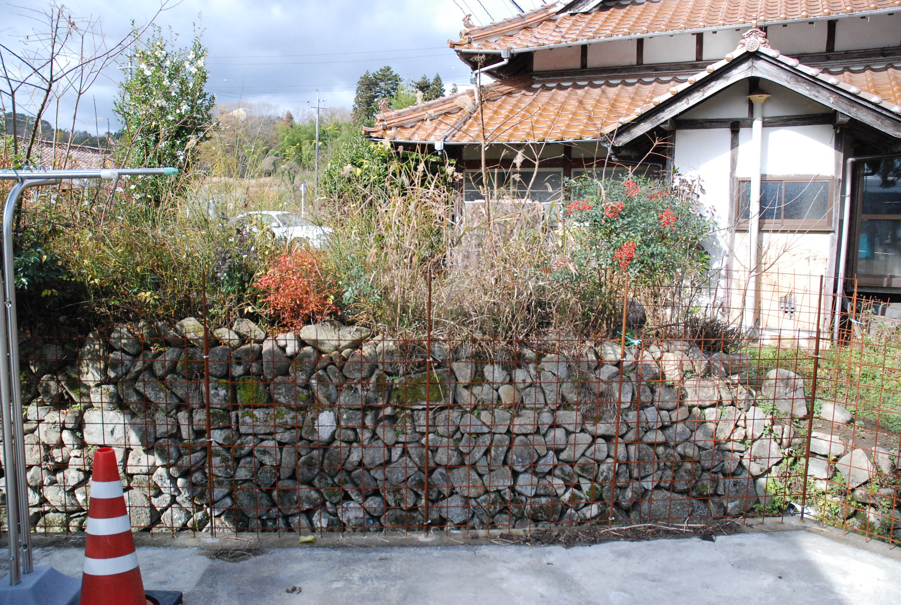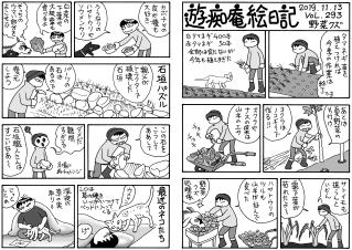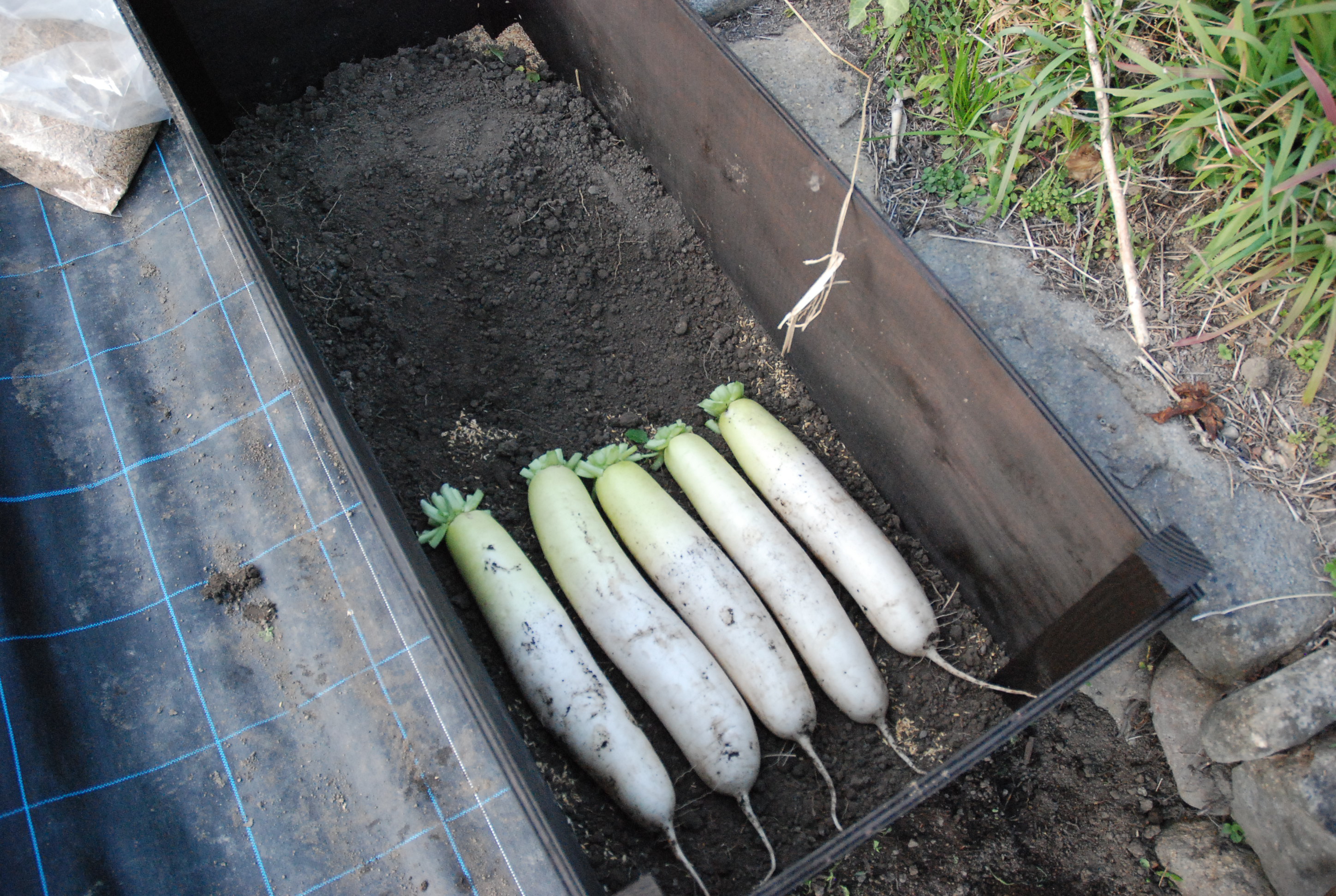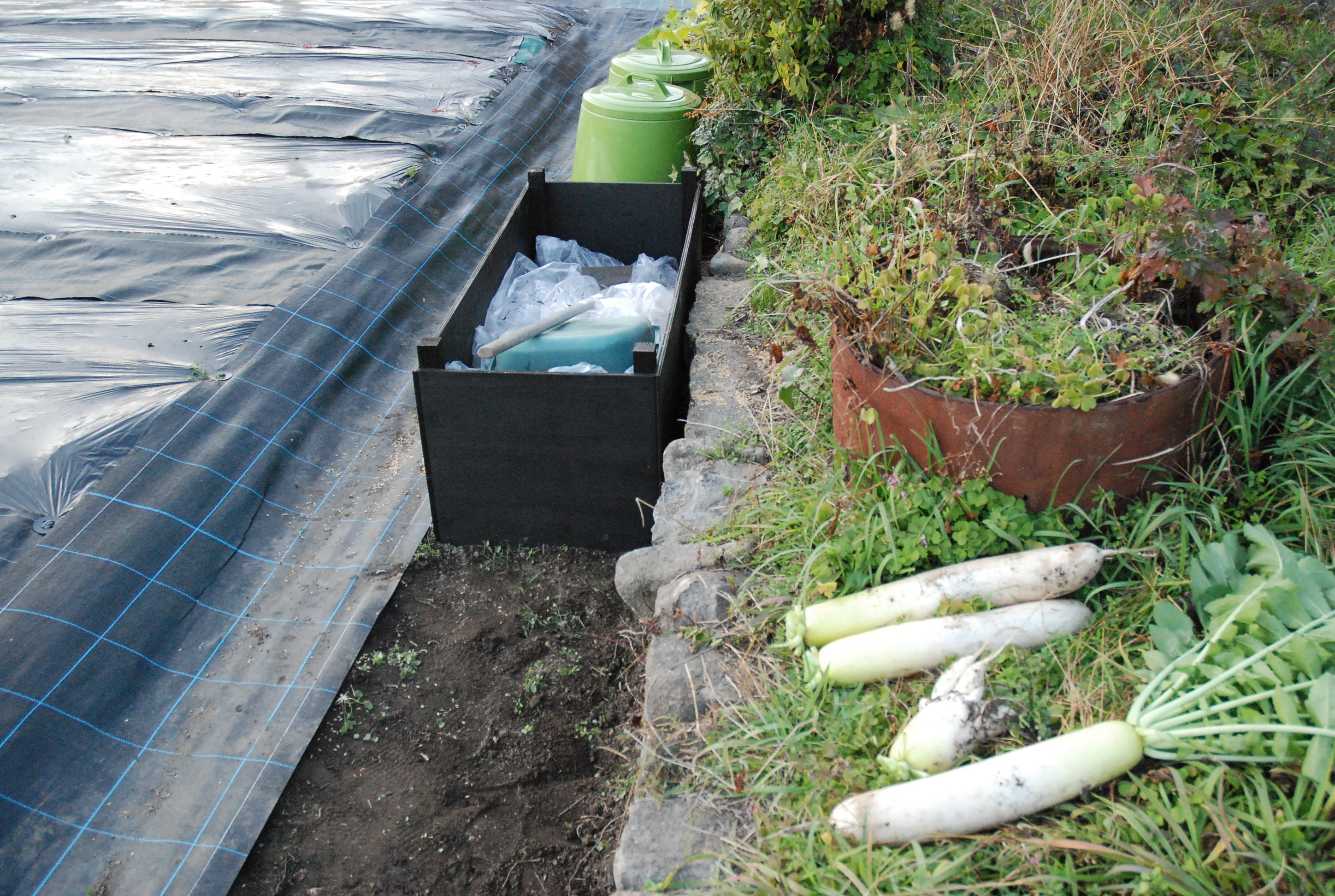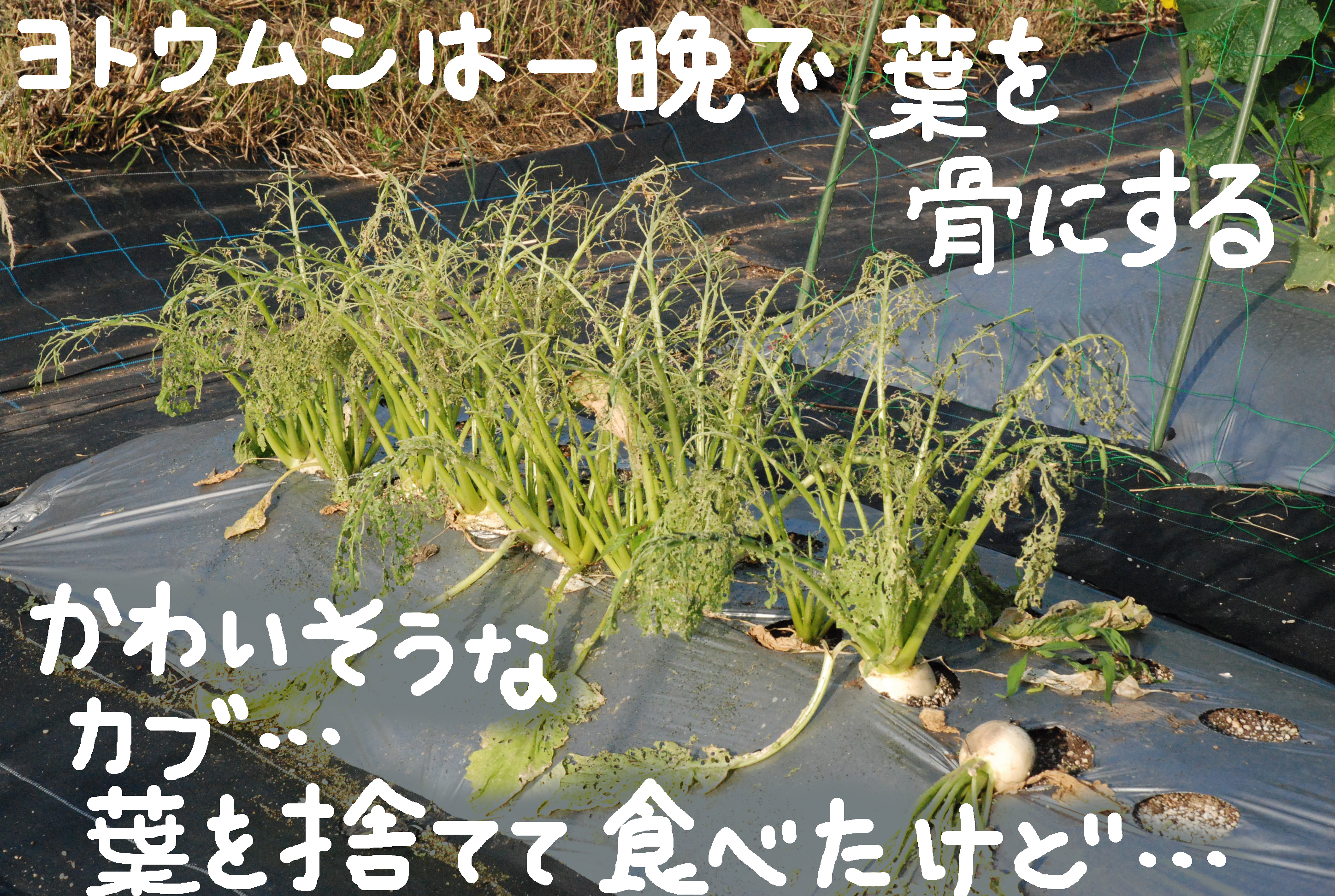 タマネギ植えた。白タマネギ400本,赤タマネギ50本。今年もまた植えすぎた~。大根と白菜は,防虫ネットの中で巨大化しています。親父が破壊した石垣を修復しようとするも,超難解立体パズルで,解けない!