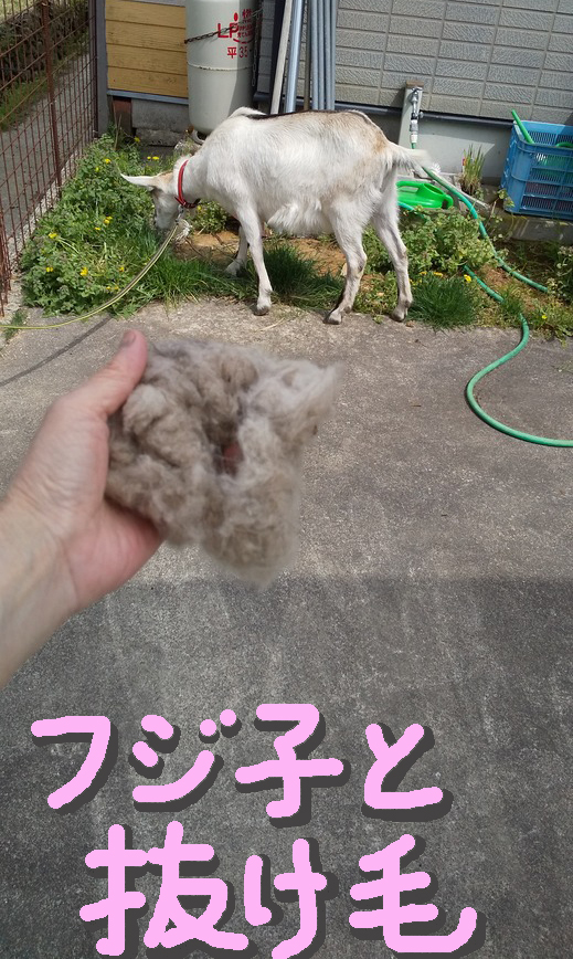 山羊たち換毛期。不二子はブラッシング大好き。ルパンは嫌いじゃないけどときどき頭突き。メラニーはそもそも触られるのがキライなのでブラシを見たらダッシュで逃走。毛玉でフェルティングルパン制作中。
