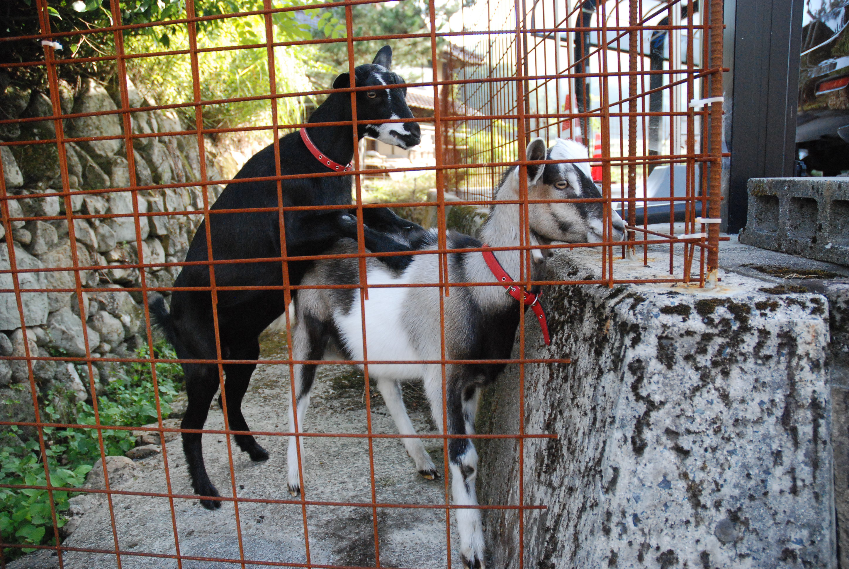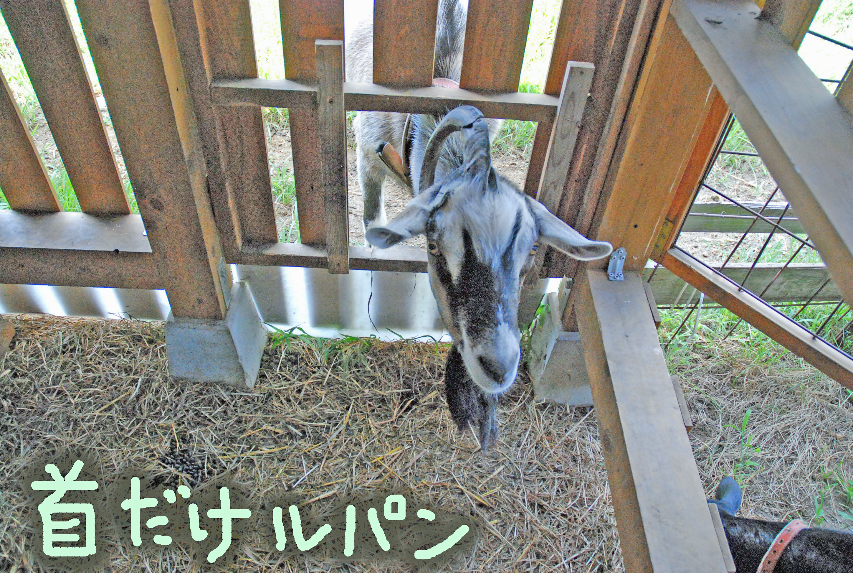 家畜保健所から山羊の飼育状況を見に来ました。ルパンは人間大好きなので,自分も話に参加させろと柵をグイグイ押して壊しそう(´Д`)。家畜保健所から貰ったものを撮影しようとすると親猫ニャースが乱入😅