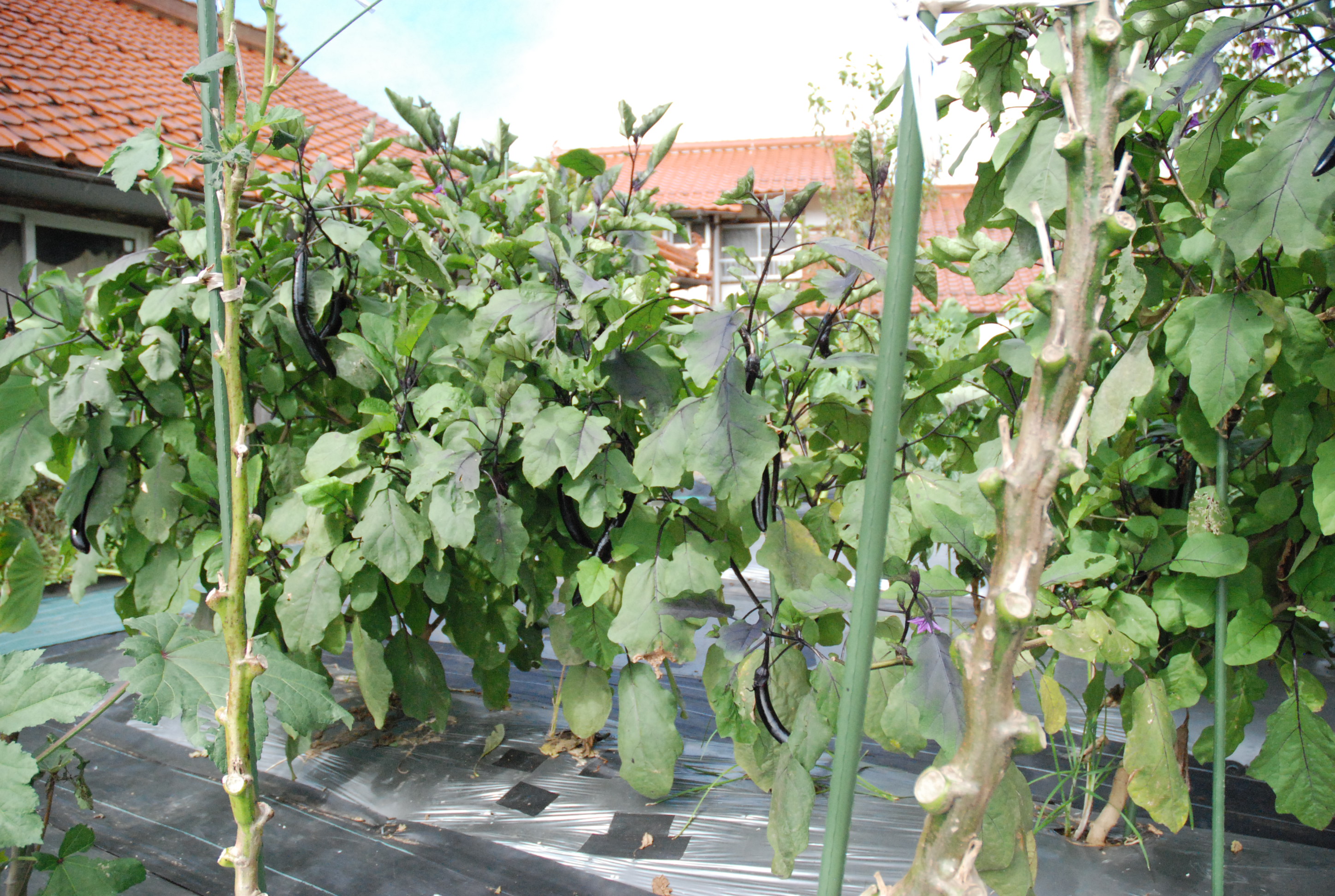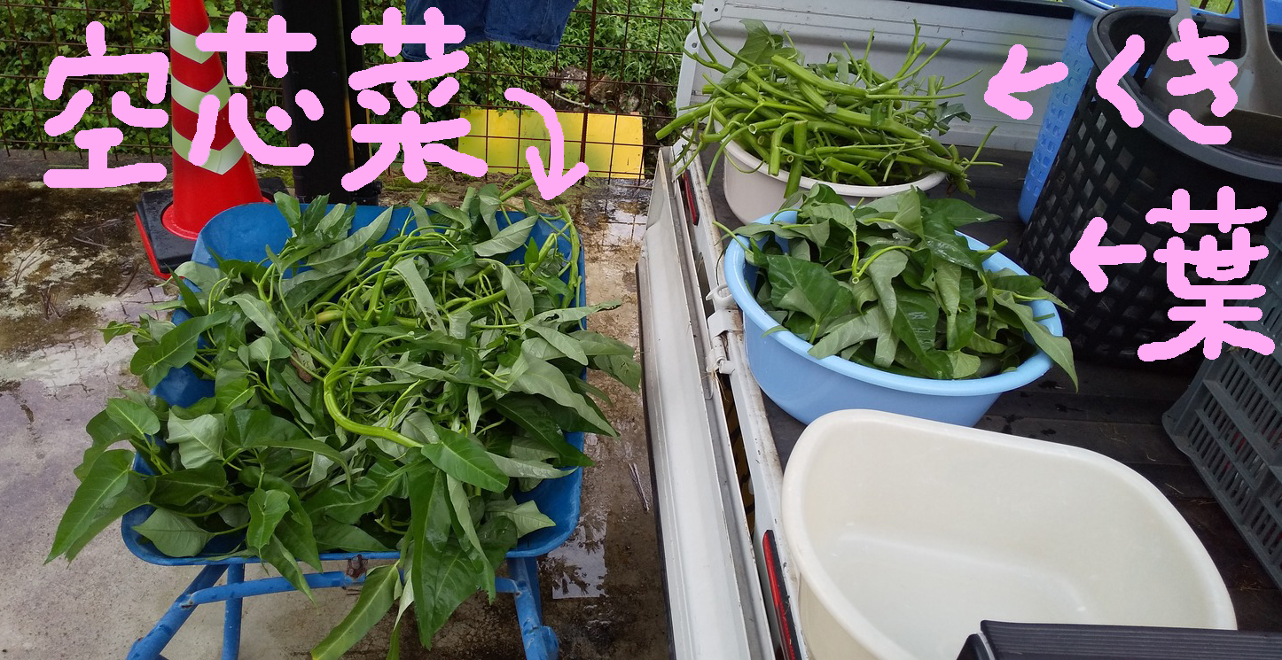 雨が続くので畑づくりが遅れています。白菜の苗をメッシュ柵のそばに置いたら山羊が抜いてくれました。ナス,オクラ,ゴーヤなどはまだ元気です。空芯菜も藪になっているので,鎌で刈ってニンニク炒め💖