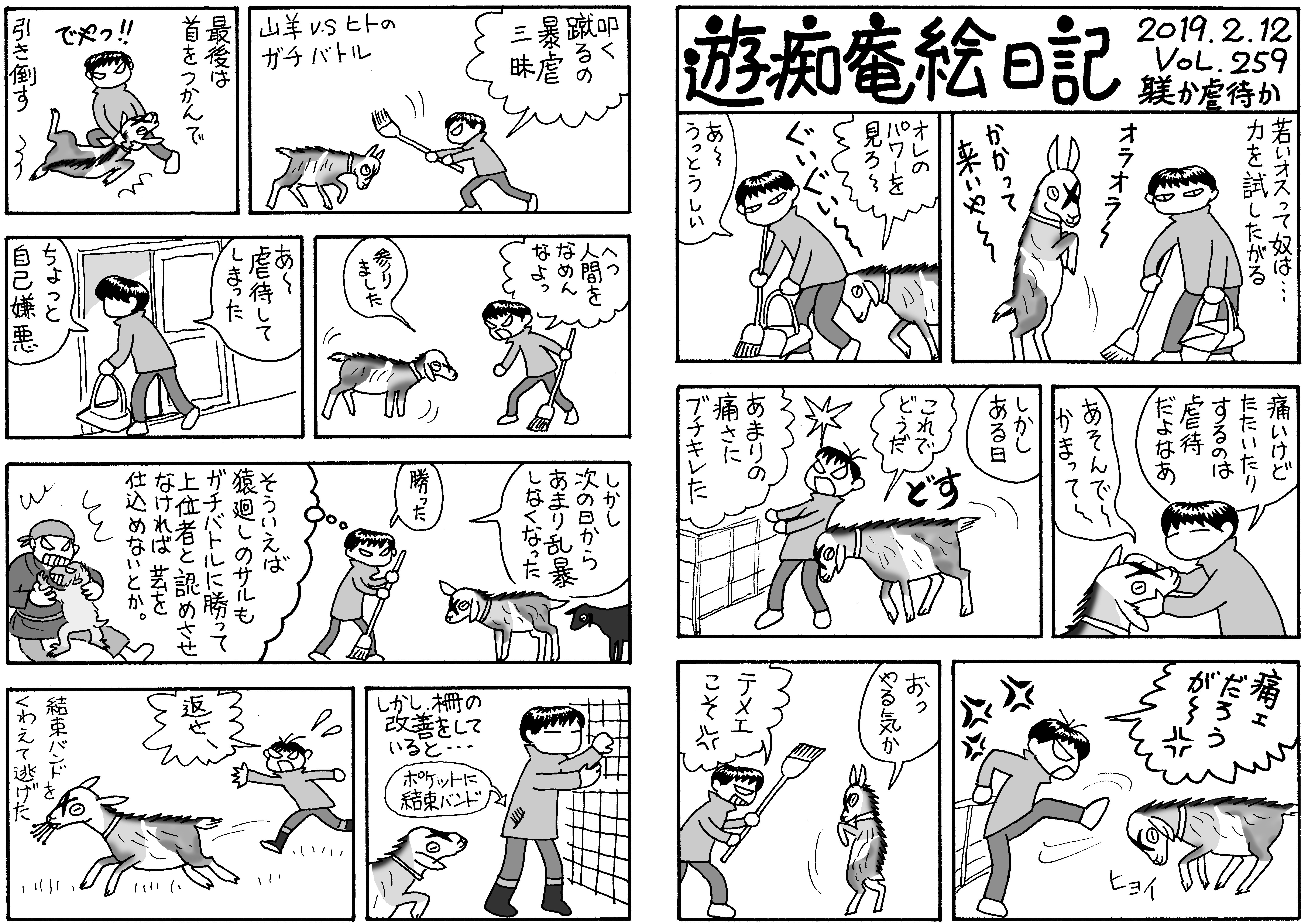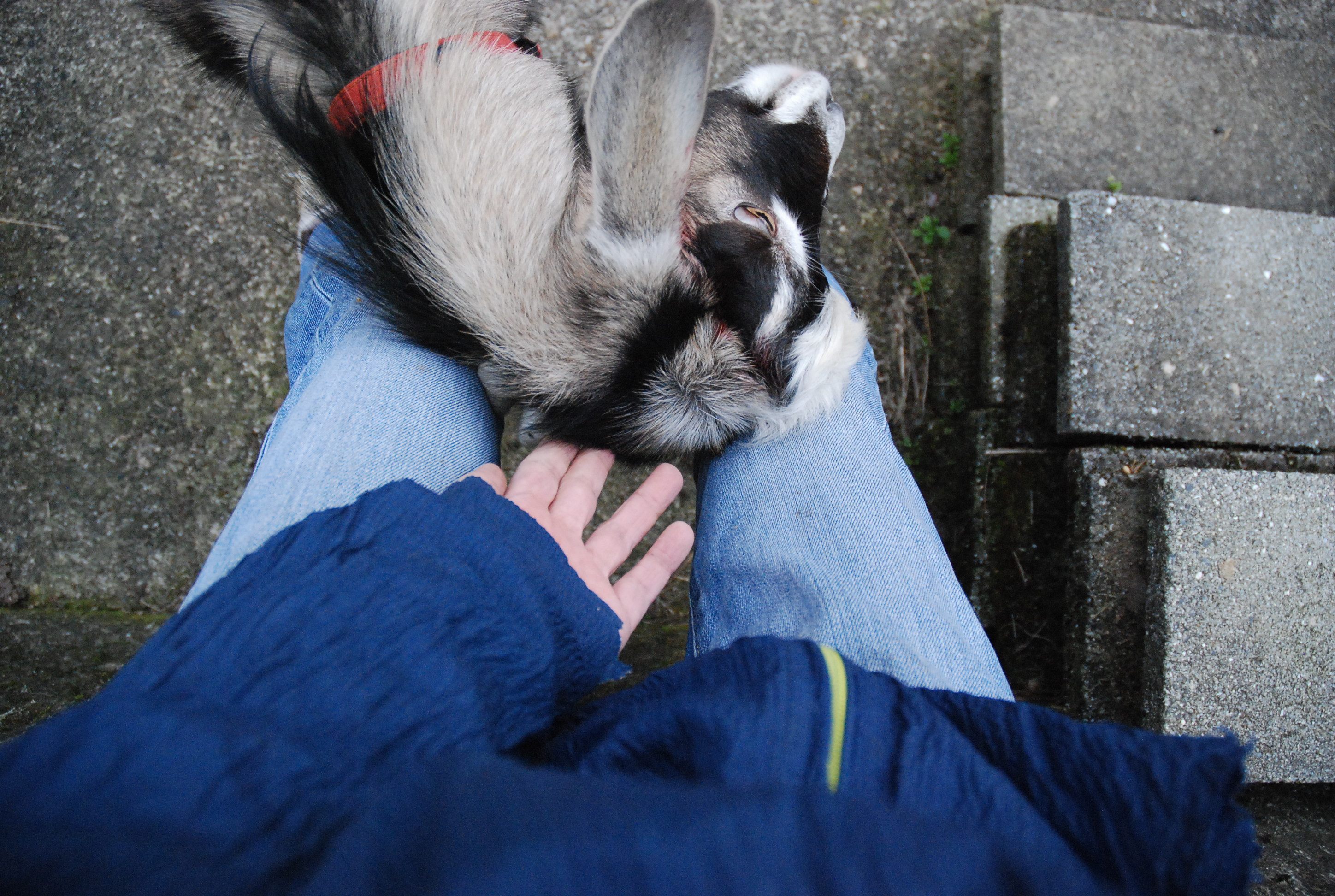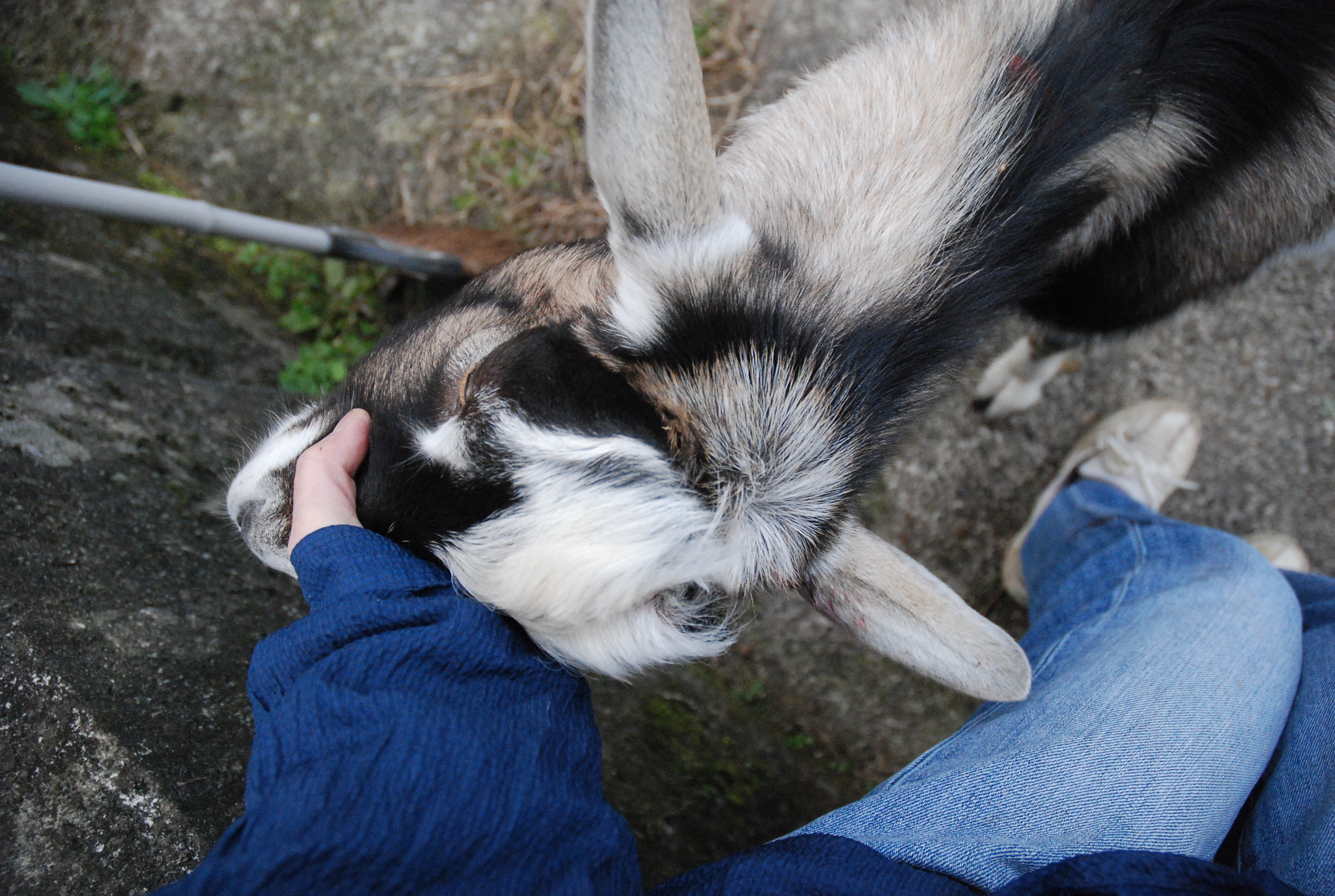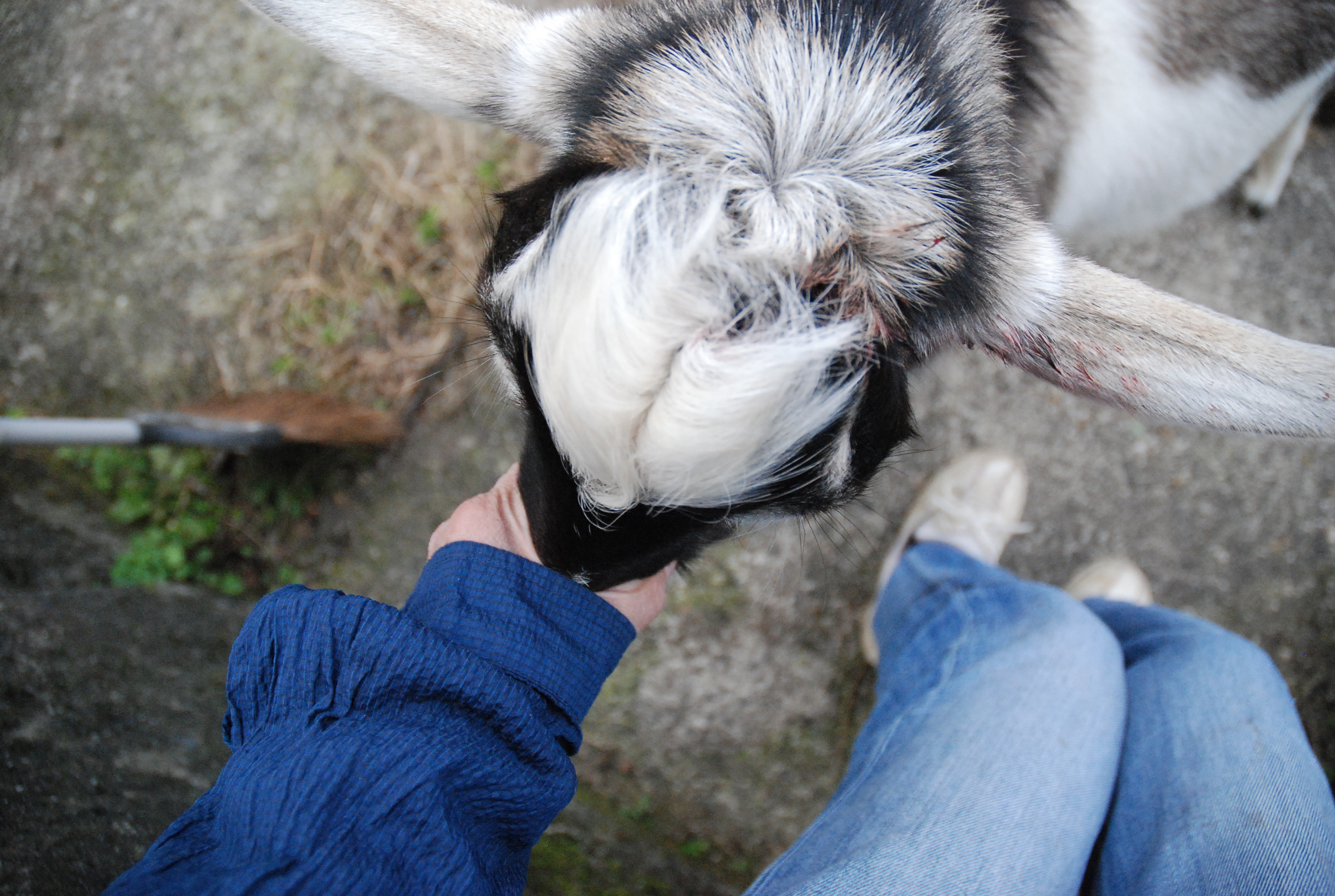 ルパン(7ヶ月)の力任せの甘えがあまりに痛くて,ついにガチバトル。角をつかんでねじ伏せるのが良いらしいが,ルパンは除角していて角がない。首や身体をつかんで倒した。以後私を上位者と認めたようだ。