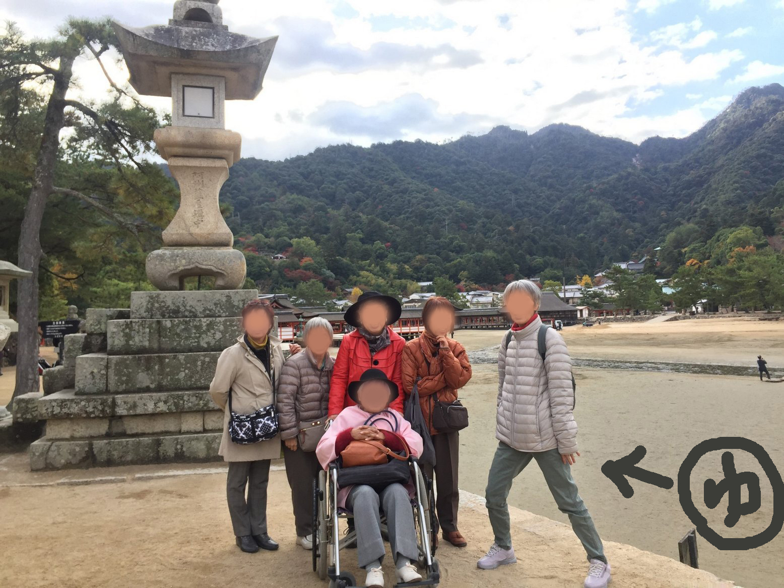 クラス女子会旅行in広島。久しぶりに会って,話をするだけで楽しい私たち。写真①厳島神社,②紅葉谷,③神楽の後の撮影会,④宮島の鹿(ウチの山羊より華奢だ)。オマケ⑤実家に連れて行った猫の一匹。