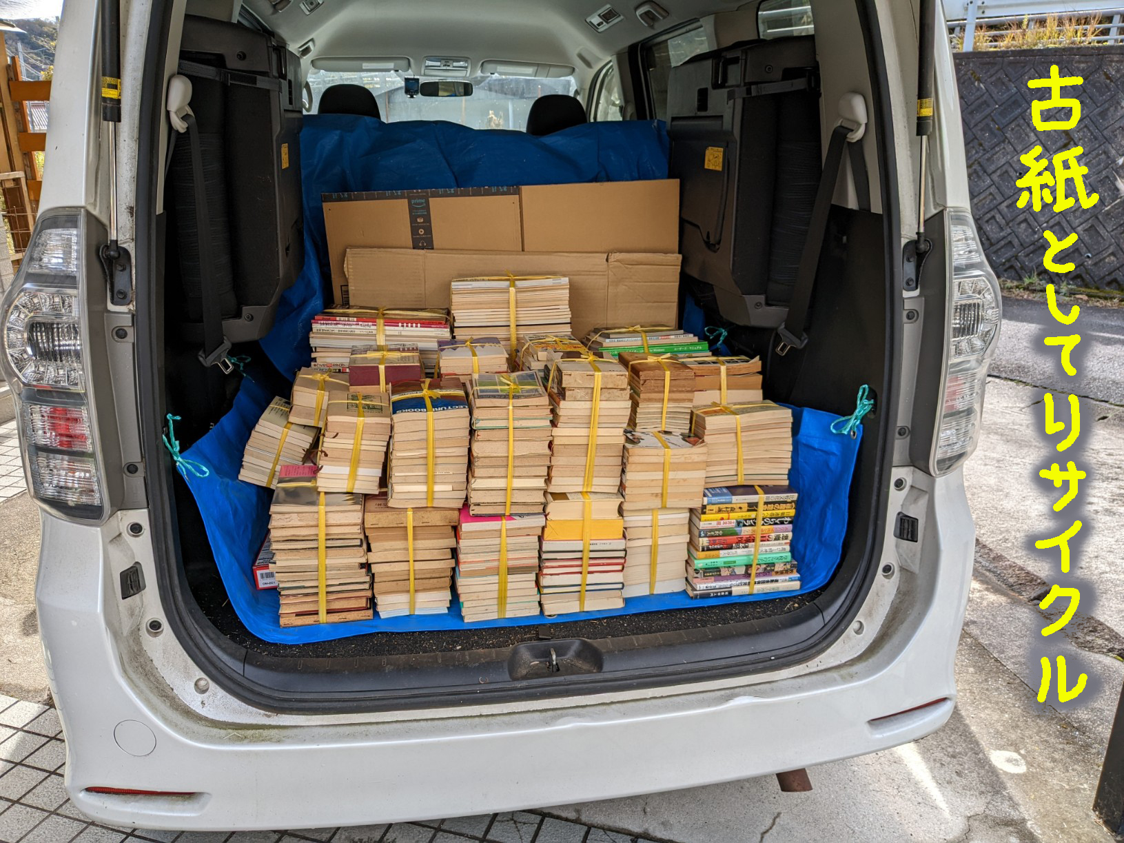 書庫の片付けⅡ。久留米のつなぐ書店へ寄贈したいけどISBNがない本は扱わないそうで,一冊ずつISBNをチェックして分別し,寄贈する本は段ボール箱へ詰め,ISBNなしの本はヒモで縛って芸北きれいセンターへ。