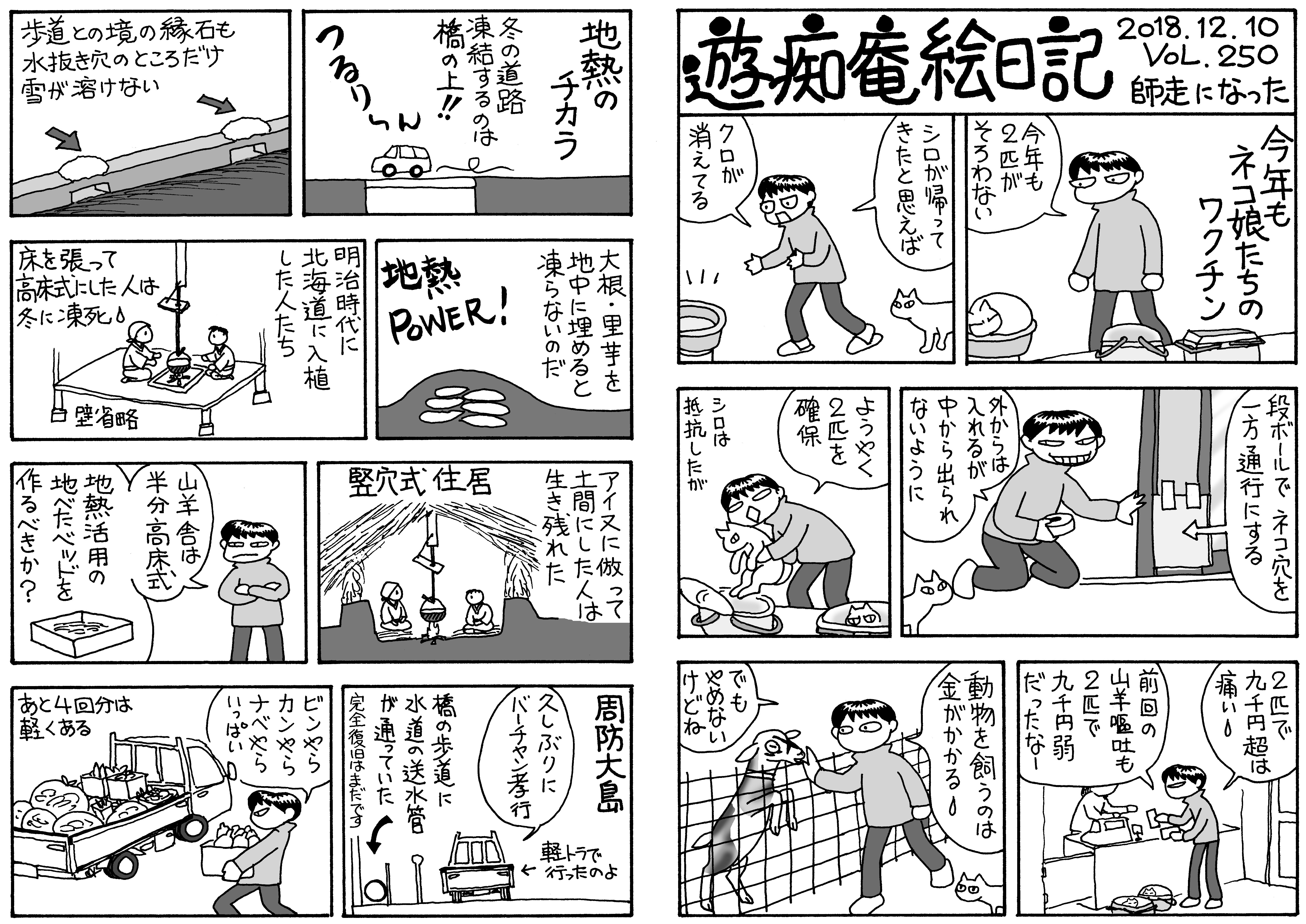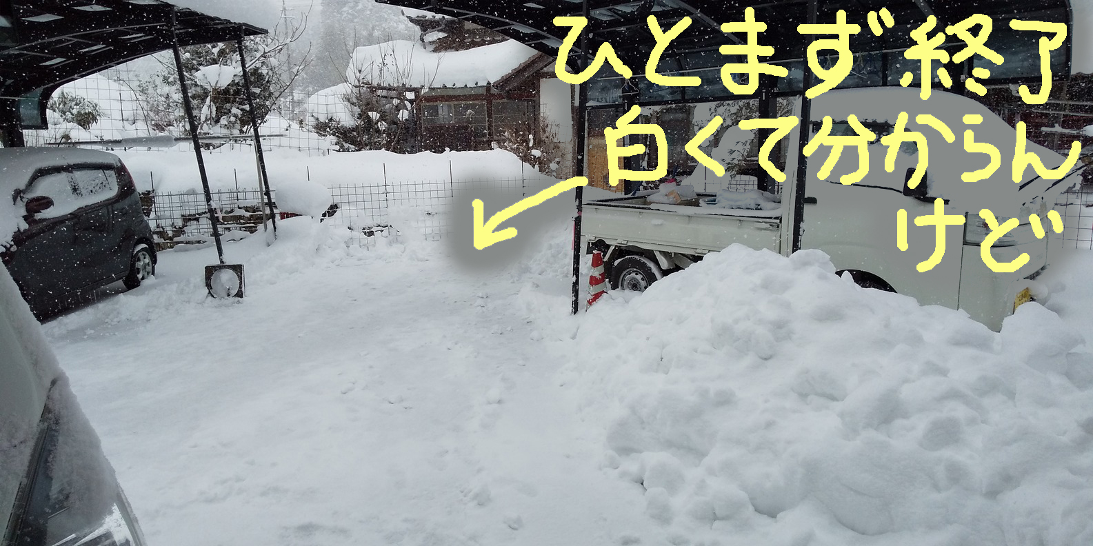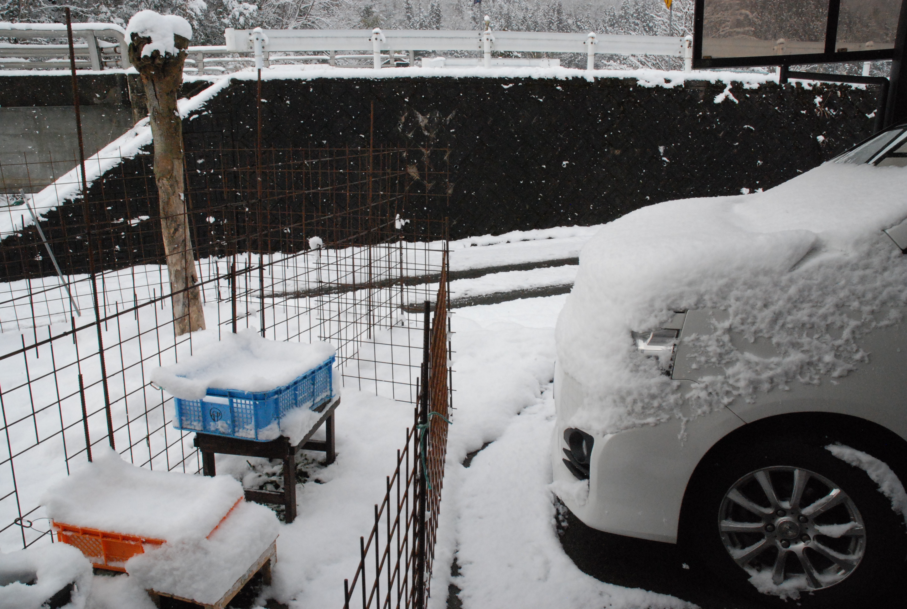 12月になり雪が舞う~。山や畑は白いけど道路は大丈夫。娘ネコ(クロとシロ)はワクチン接種のため動物病院へ。なかなか2匹同時に家に居なくて苦労します。大島大橋の完全復旧にはまだ時間がかかりそう。