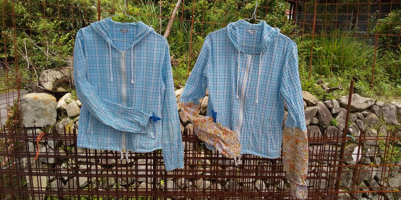 梅雨が明けた途端,太陽の威力10倍増。危険な暑さの日中は室内でお裁縫。お気に入りの野良着をコピー再生しました。ずさんな裁縫だけど野良着ですから(笑)。子山羊たち3匹が里子に旅立ち,ペットロスです。