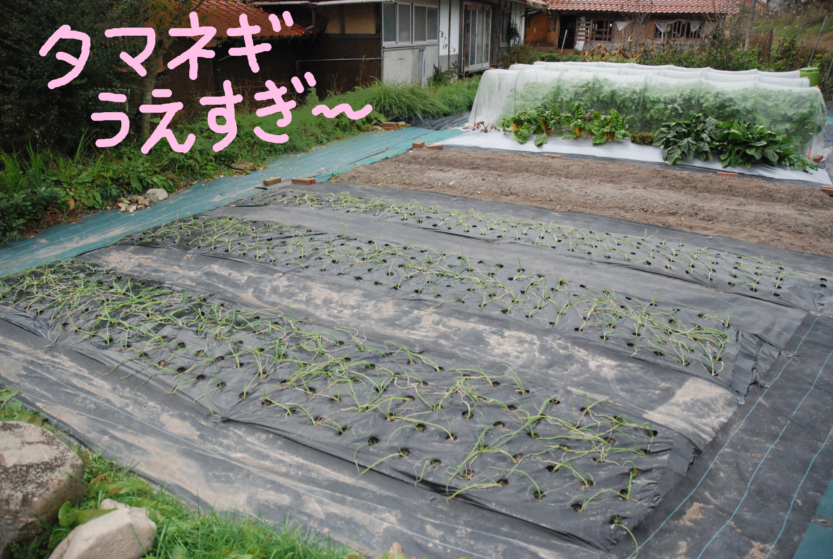 やっとタマネギを植えました。白菜が巻いてきて,いよいよ冬です。