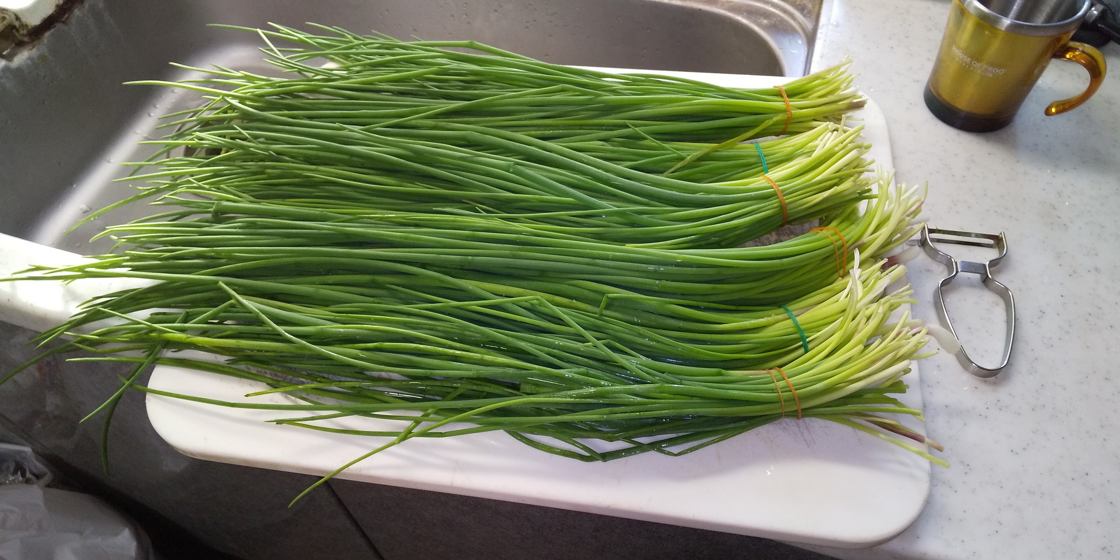 ルパンの一本角がじわじわ伸びてこめかみに刺さりそう。獣医さんに往診で鎮静剤を打ってもらい,自力で切ります。古くなった首輪を新しいのに交換しました。ニンニクとタマネギ収穫しました。シゴをします。