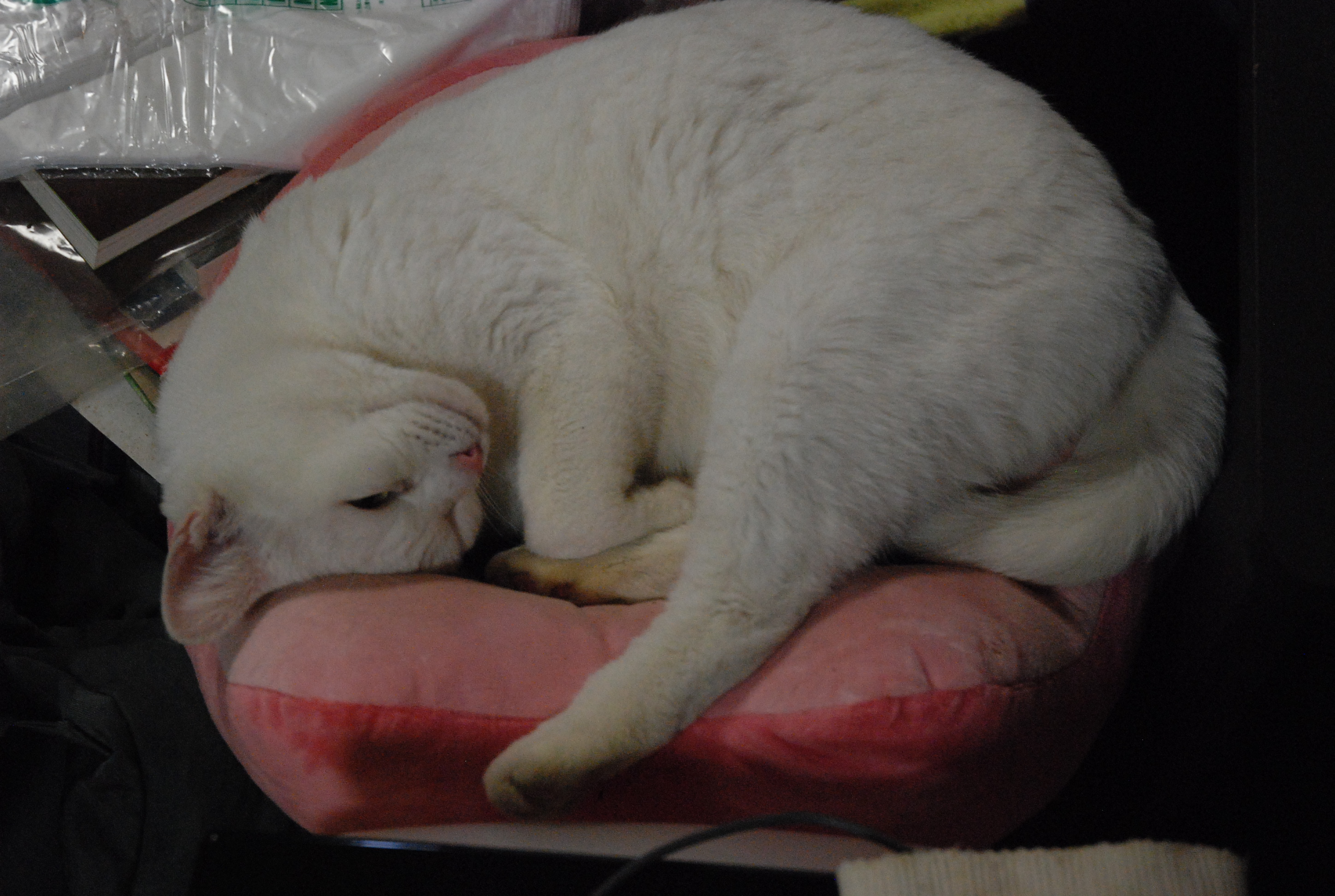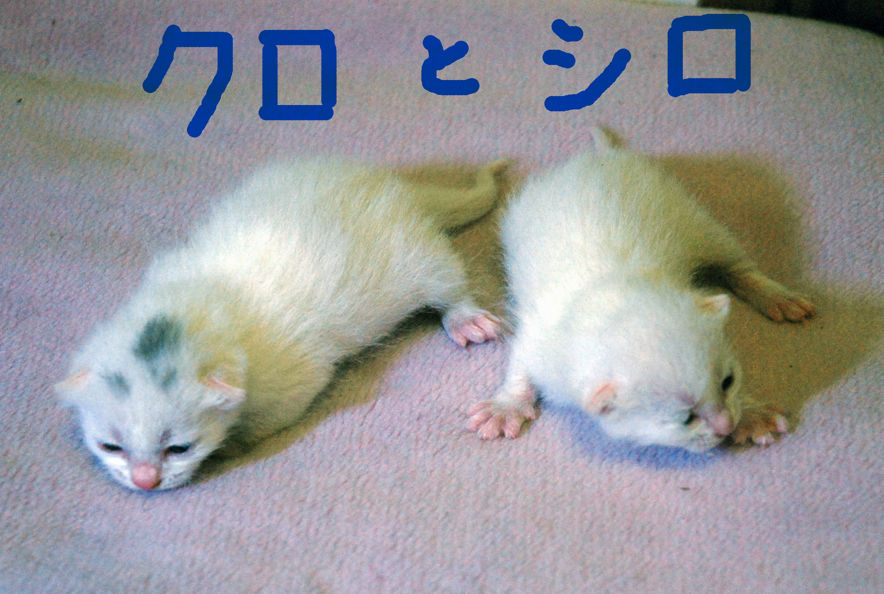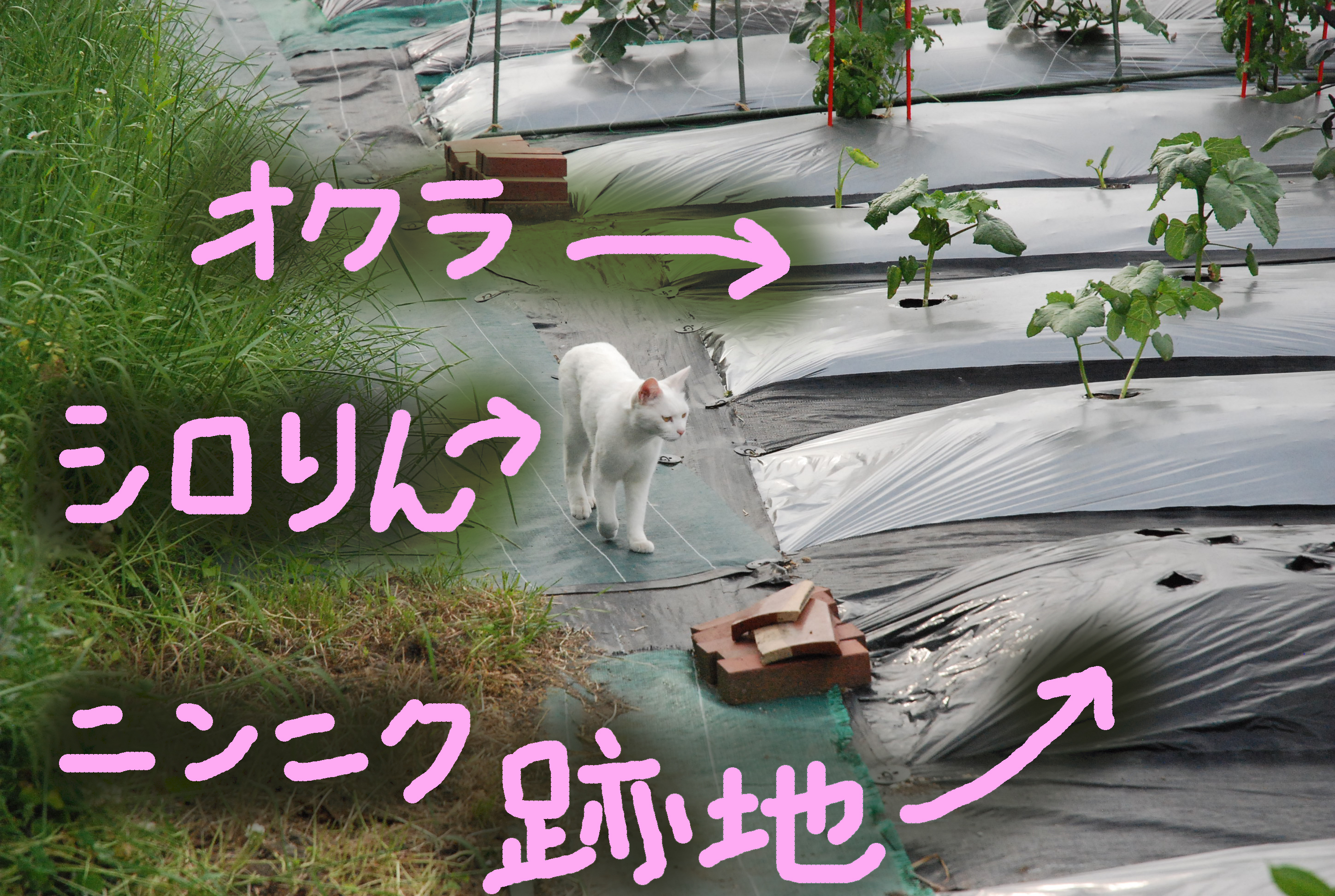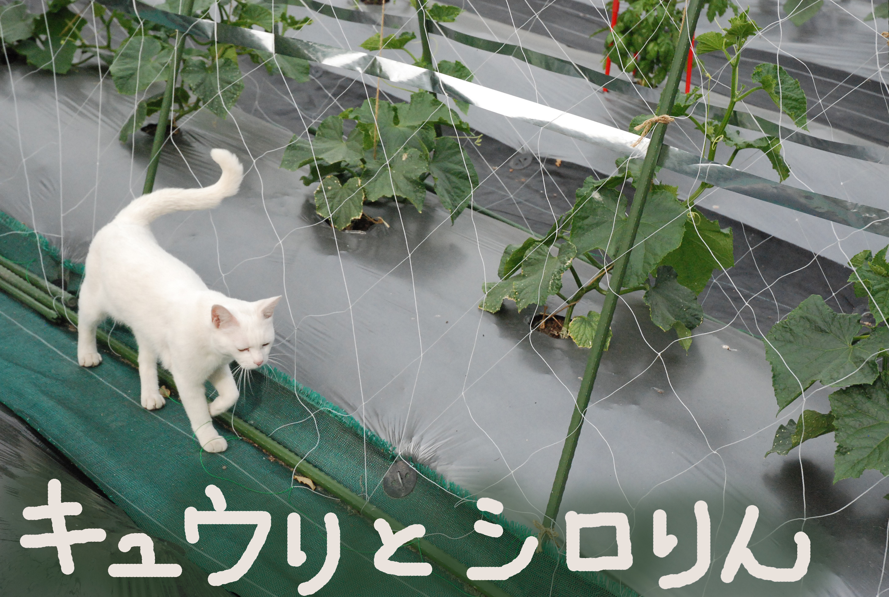 ルパンがエリマキトカゲになっていました。冬囲いのポリカハモニカ板に首を突っ込んで抜けなくなって困っていました笑。白ネコなのにクロという名前…クロは幼少時に頭に黒い毛があったのです。写真①,②