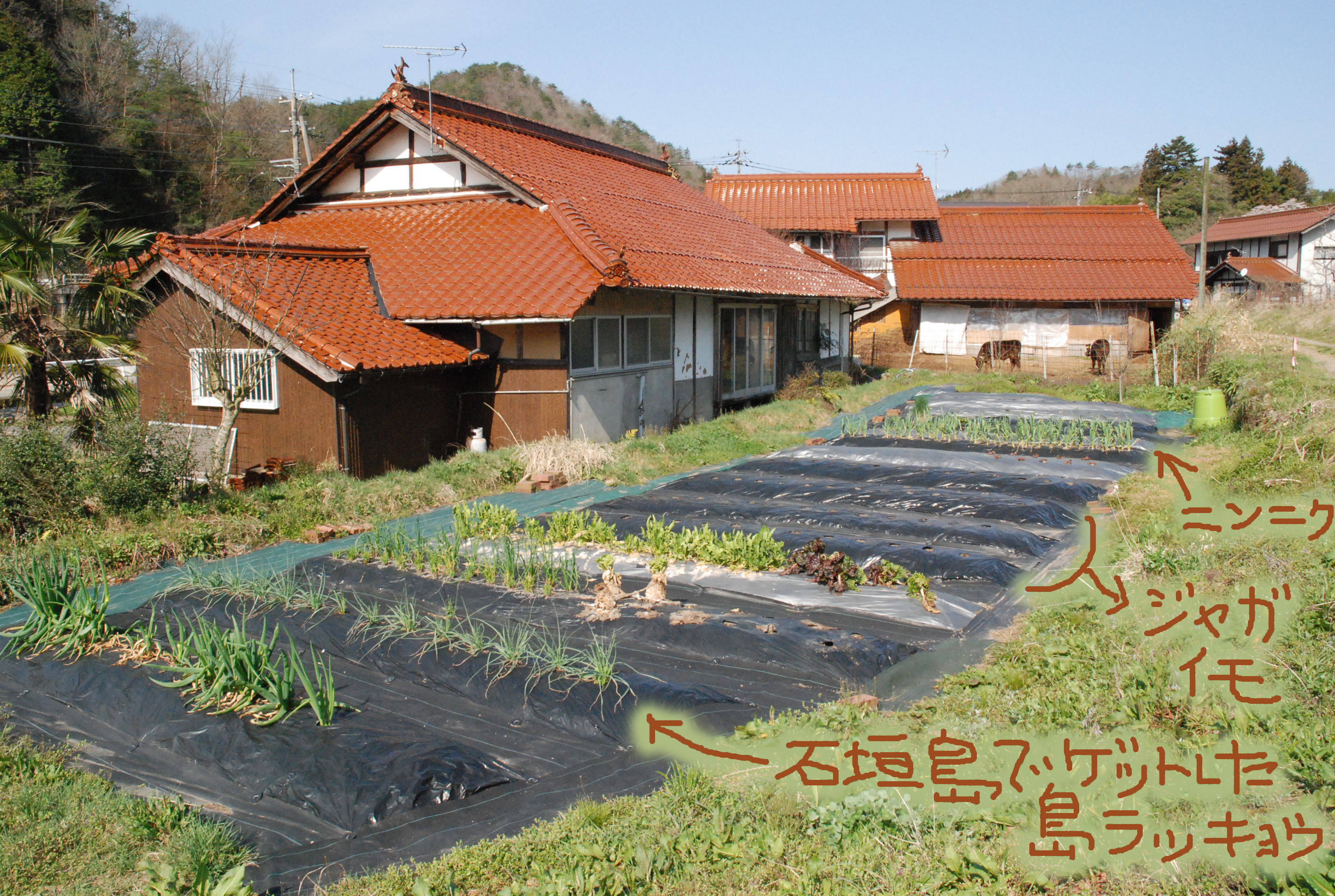4月になり,畑づくり始動。でも,近所の人は「え,もう?」と呆れてます。畑にいたら,牛の集団が「どっどどどどう」と歩いて行く。私が畑仕事をしている時間を狙って牛が脱走するような…(-"-)。気のせい?