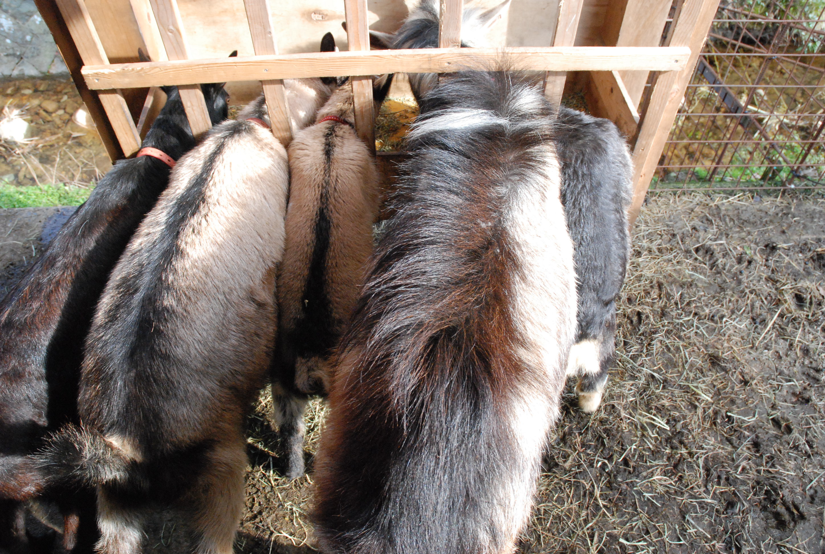 冬場の運動場は,山羊ズが泥と糞と尿を踏み捏ねてドロドロ。山羊舎の中も乾かなくて,糞と尿を山羊が捏ねる。子山羊はルパンのエサ穴から跳び出てエサ箱を泥クソだらけにする。VOXYまで跳ぶ。跳んだやつ。