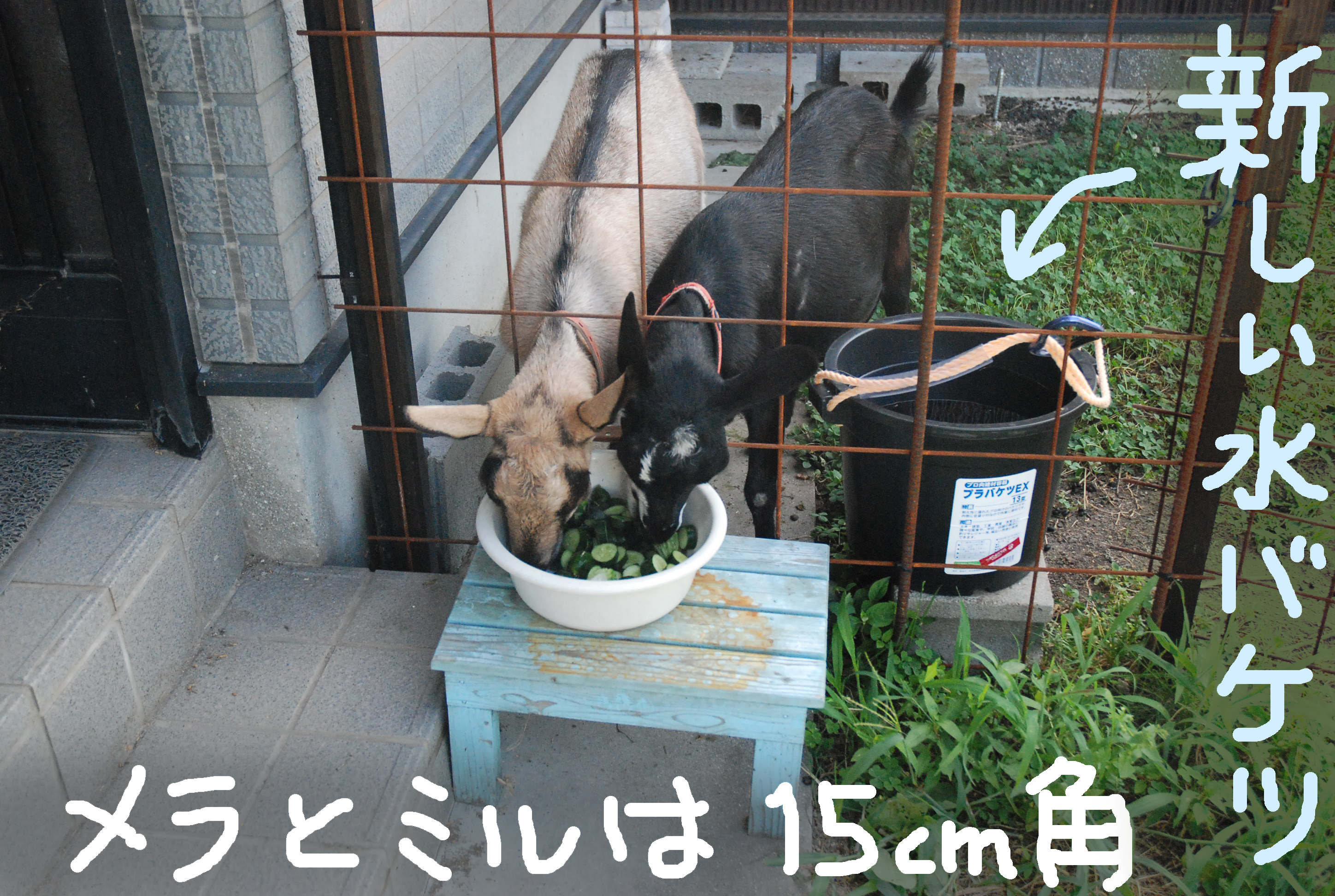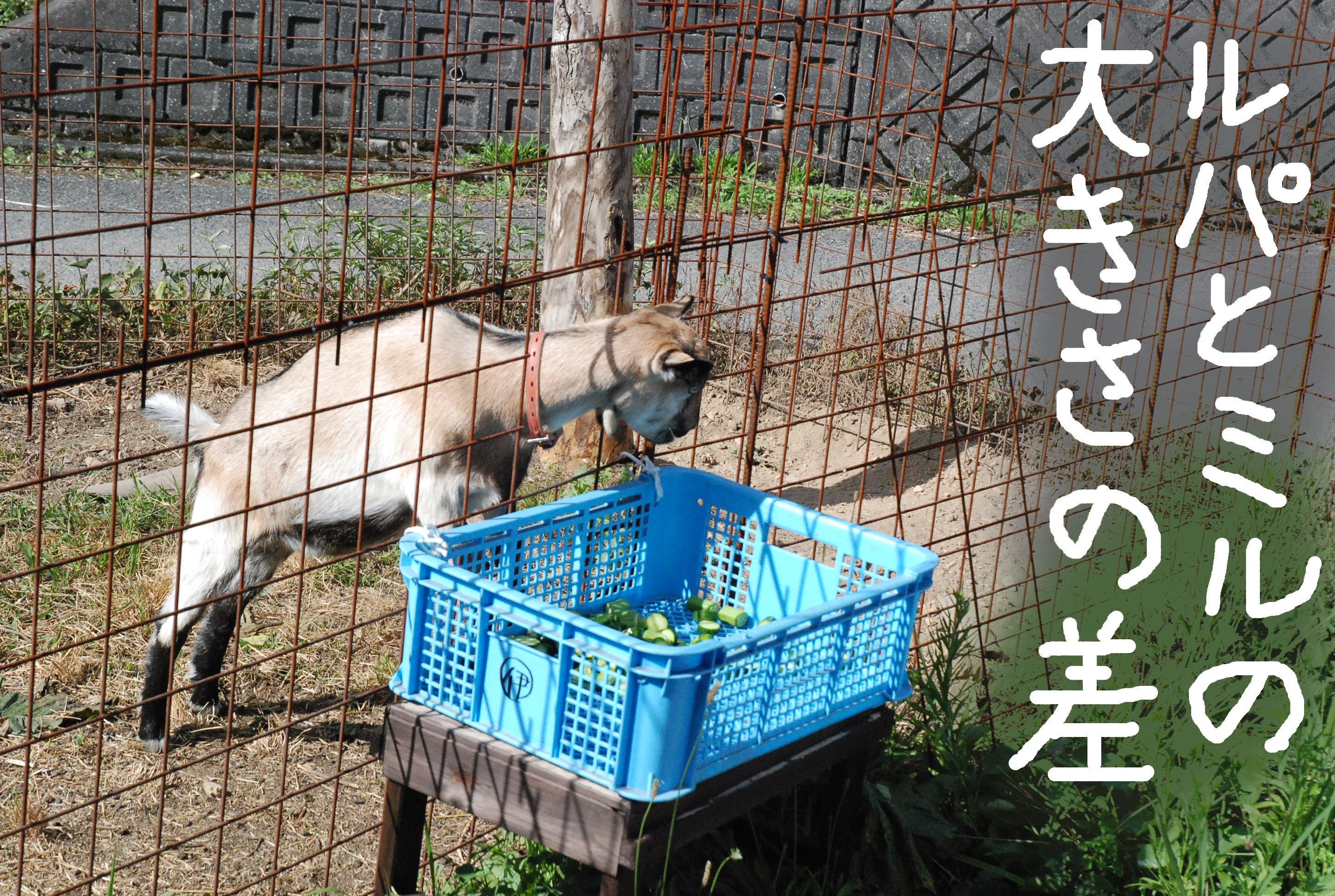 角を切ったので大人しくなった?まさか(笑)。雨が続きヒマなルパン君,山羊舎内のメラニーのエサ箱に乗り破壊💦 そうですヤギは高い所に乗りたがるのでした。夏野菜は順調に育ち今年もキュウリ地獄(;´Д`)