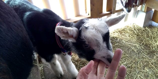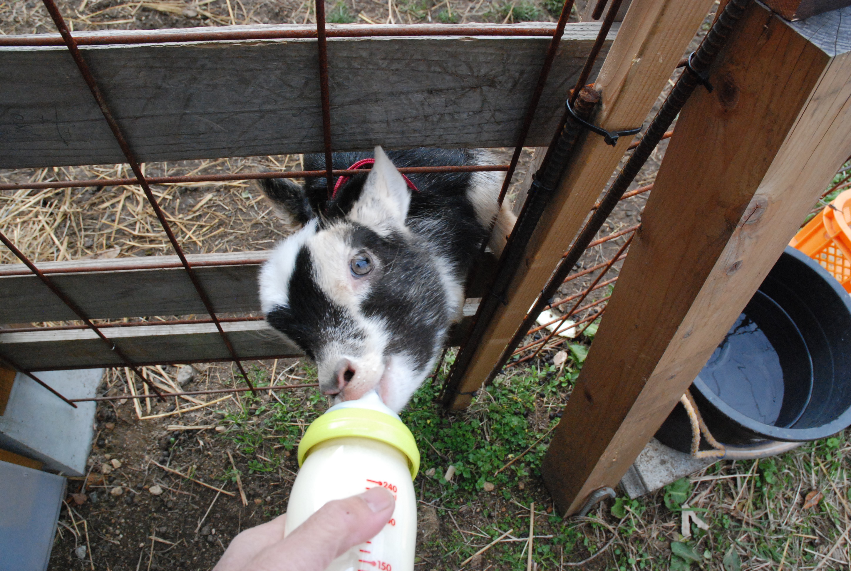 メラニーが授乳を嫌がるので,哺乳ビンで粉ミルク。ミルク(子ヤギの名前)は哺乳ビンで飲んでもすぐに母乳に吸い付こうとするが,拒否られる。メラニーを捕まえて子ヤギに乳を吸わせる。以後授乳に慣れた。