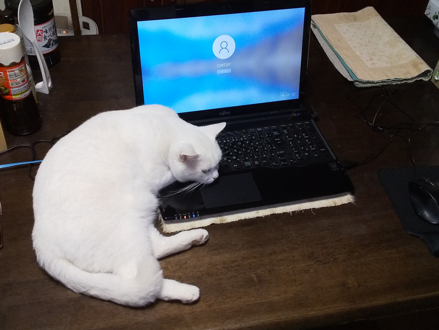 実家の蔵の軒下のゴミの山を分別&処理。我がA市のゴミ分別はシンプル。金属,ガラス,燃えるゴミの3つに大別。プラもペットも燃えるゴミでOK。電池や蛍光灯などはさすがに別。写真①パソに寄り添う猫。