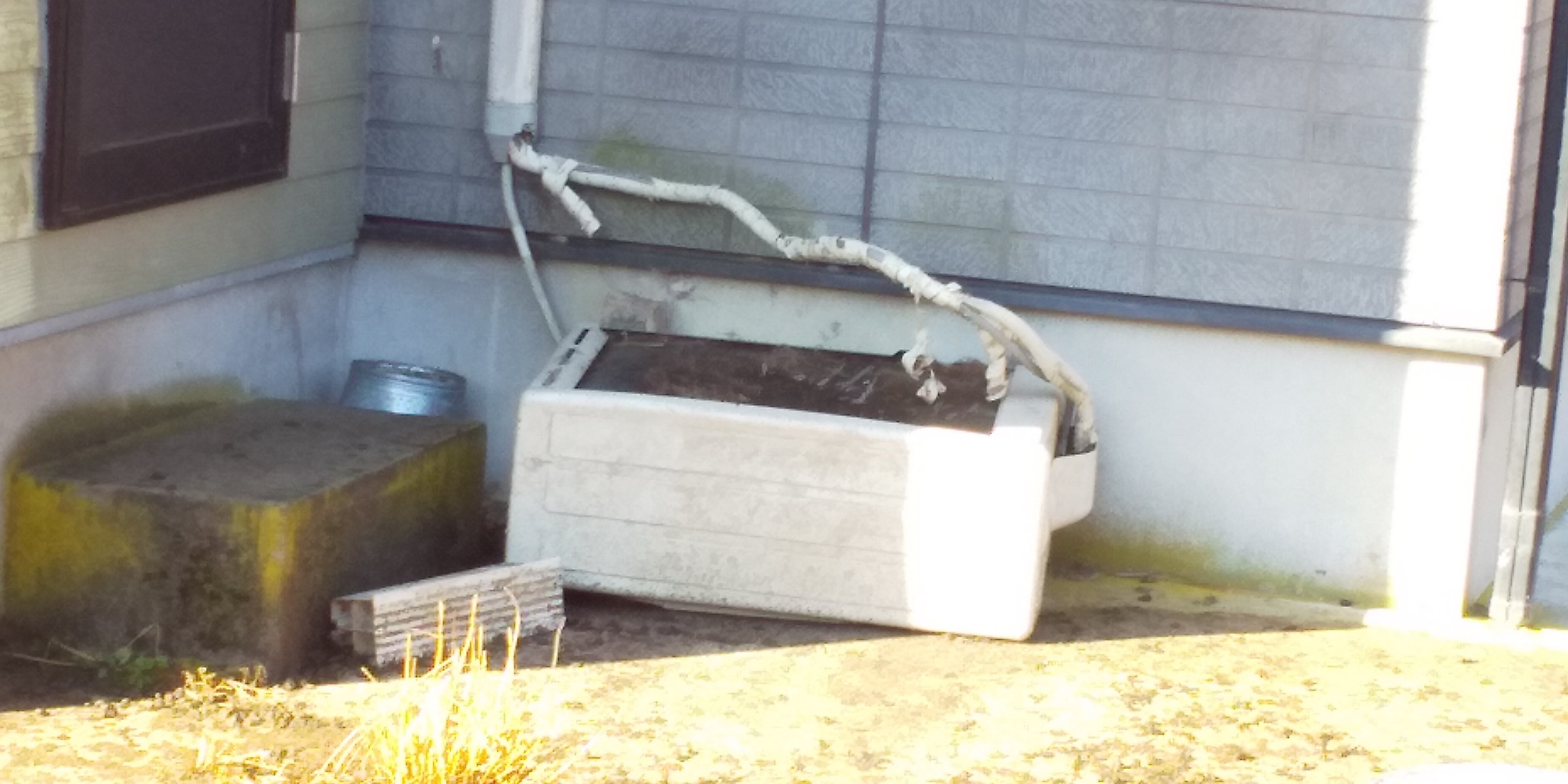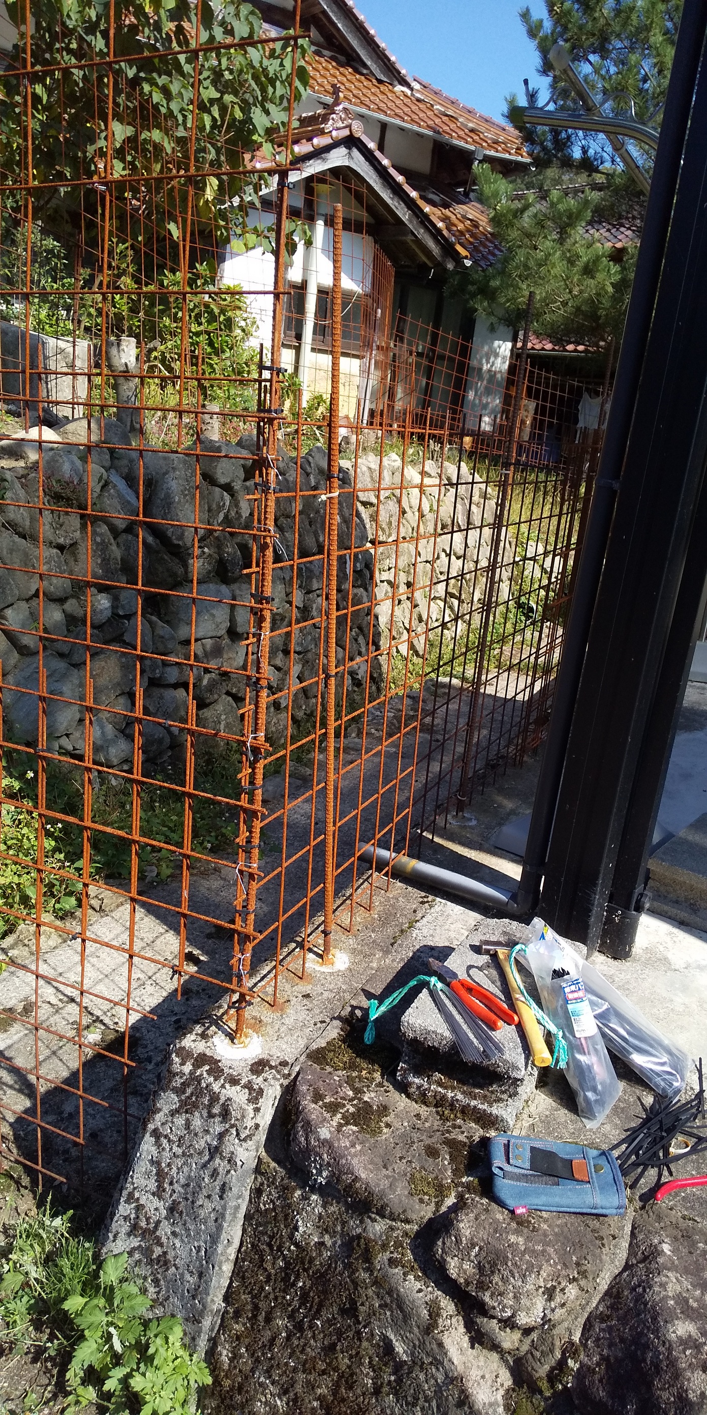 ポリカーボネートの波板にルパンが穴をあけたので修理しました。前回邪魔しぃルパンをリードでつないで作業したところ,グラインダーの音にビビってリードを引きちぎって逃走したので,今回はノーリード😅