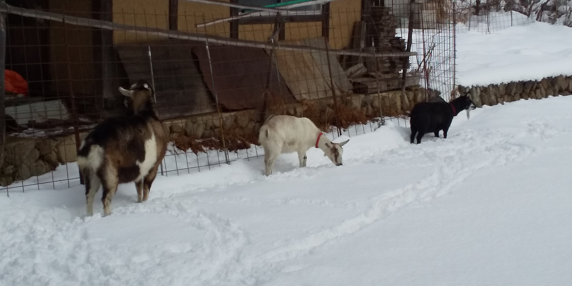 熊本のアサリに続いて鳴門のワカメまで産地偽装。他にもあるのでしょうね。もう何も信用せず,野菜は自分で育てるしかありません。2月はまだ雪が積もります。積もっても外に出るヤギーズ。冷たくないのか。