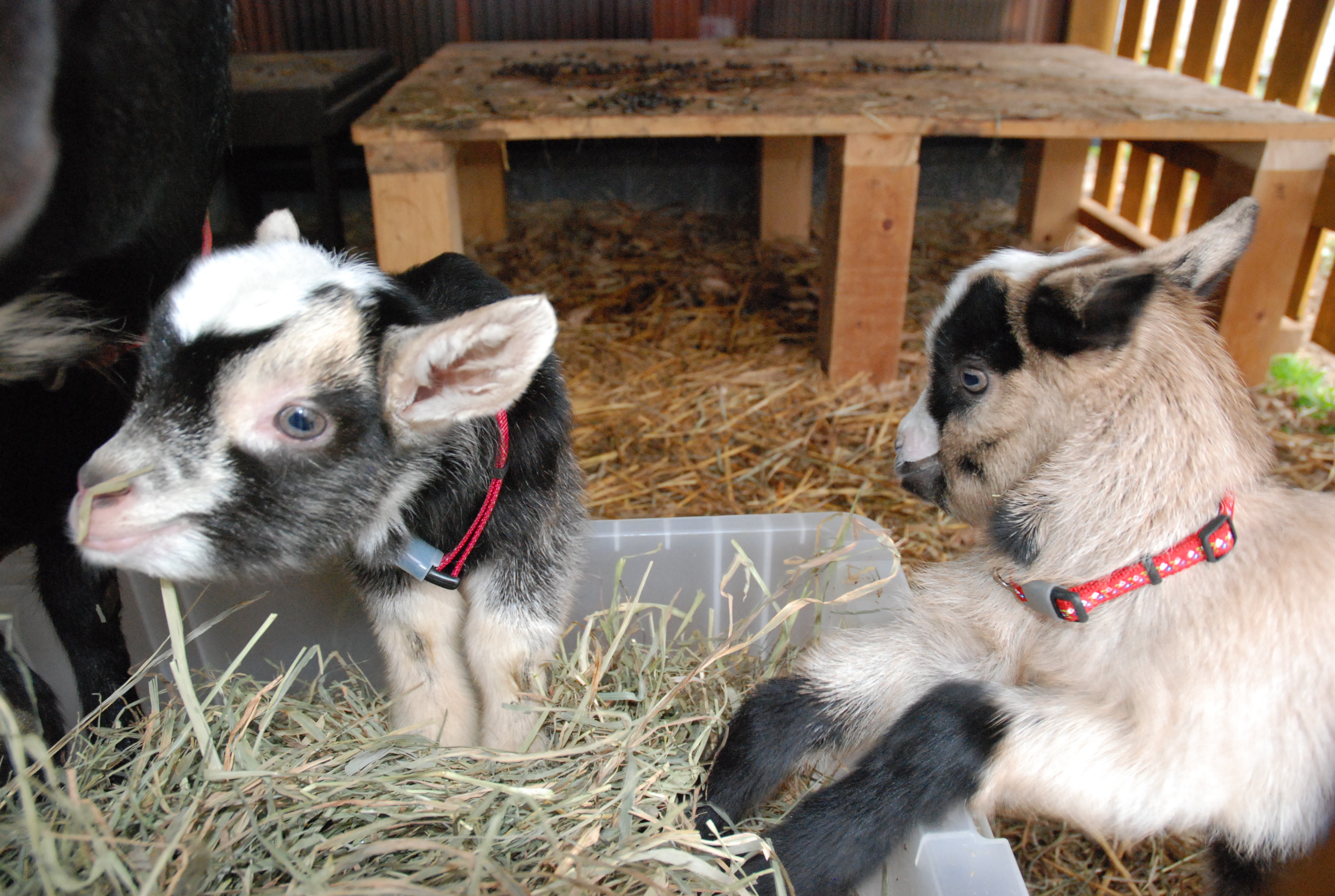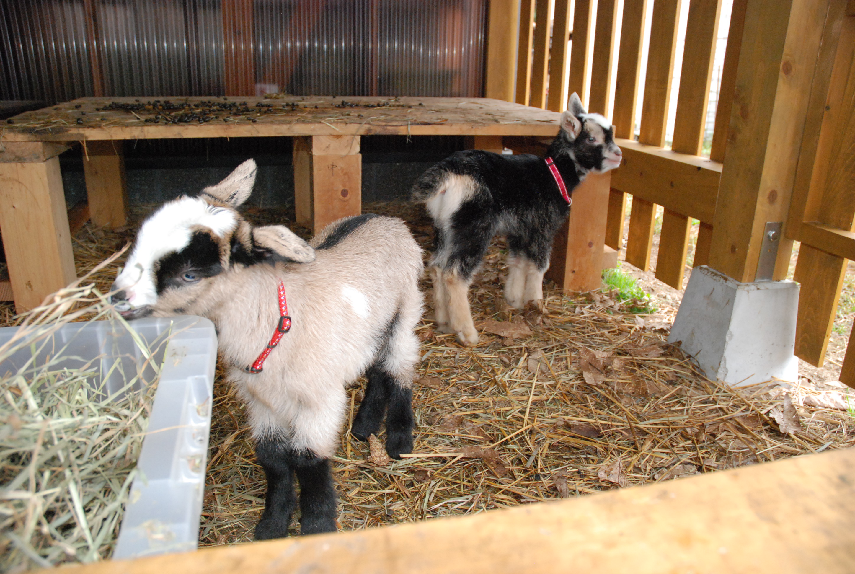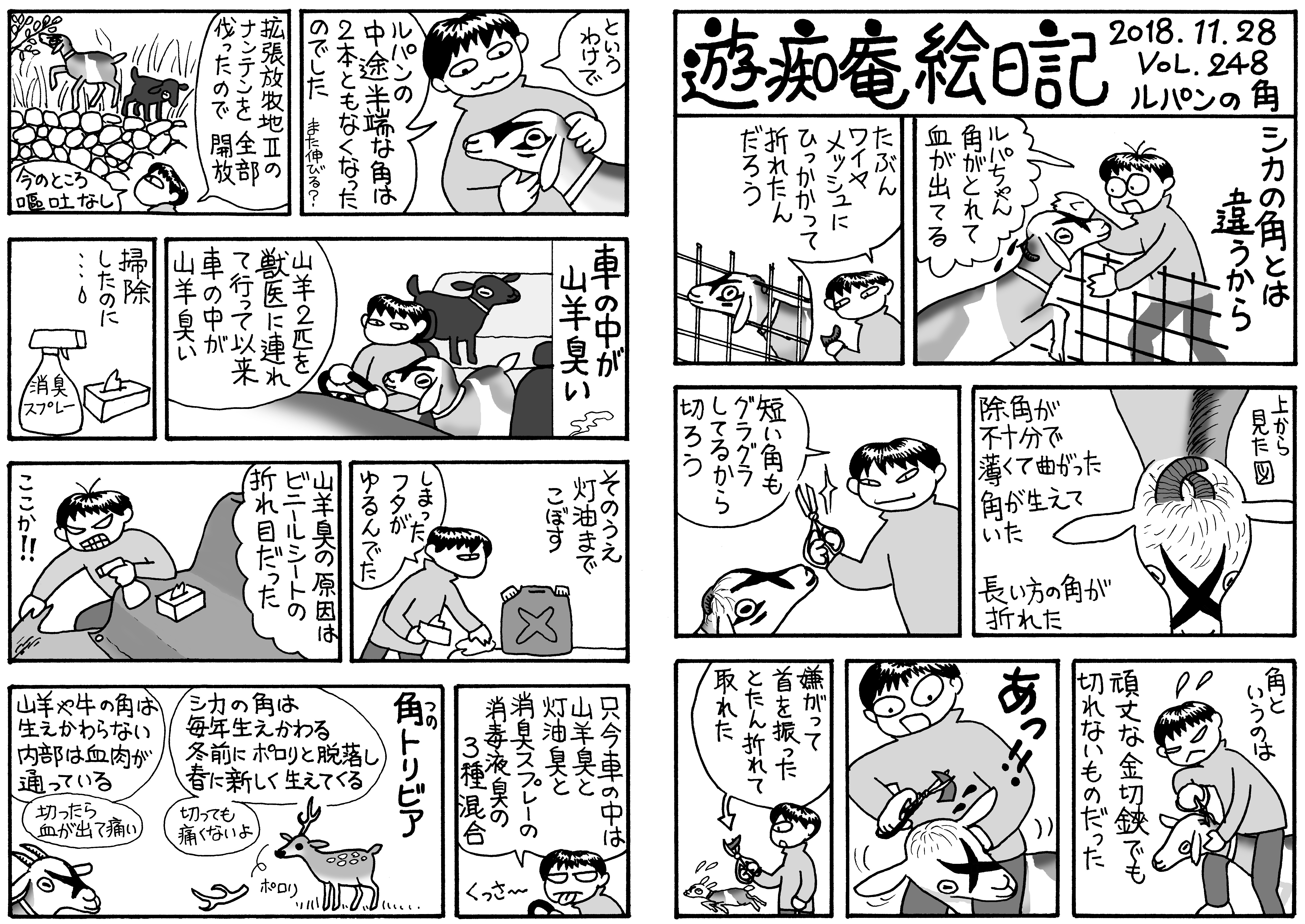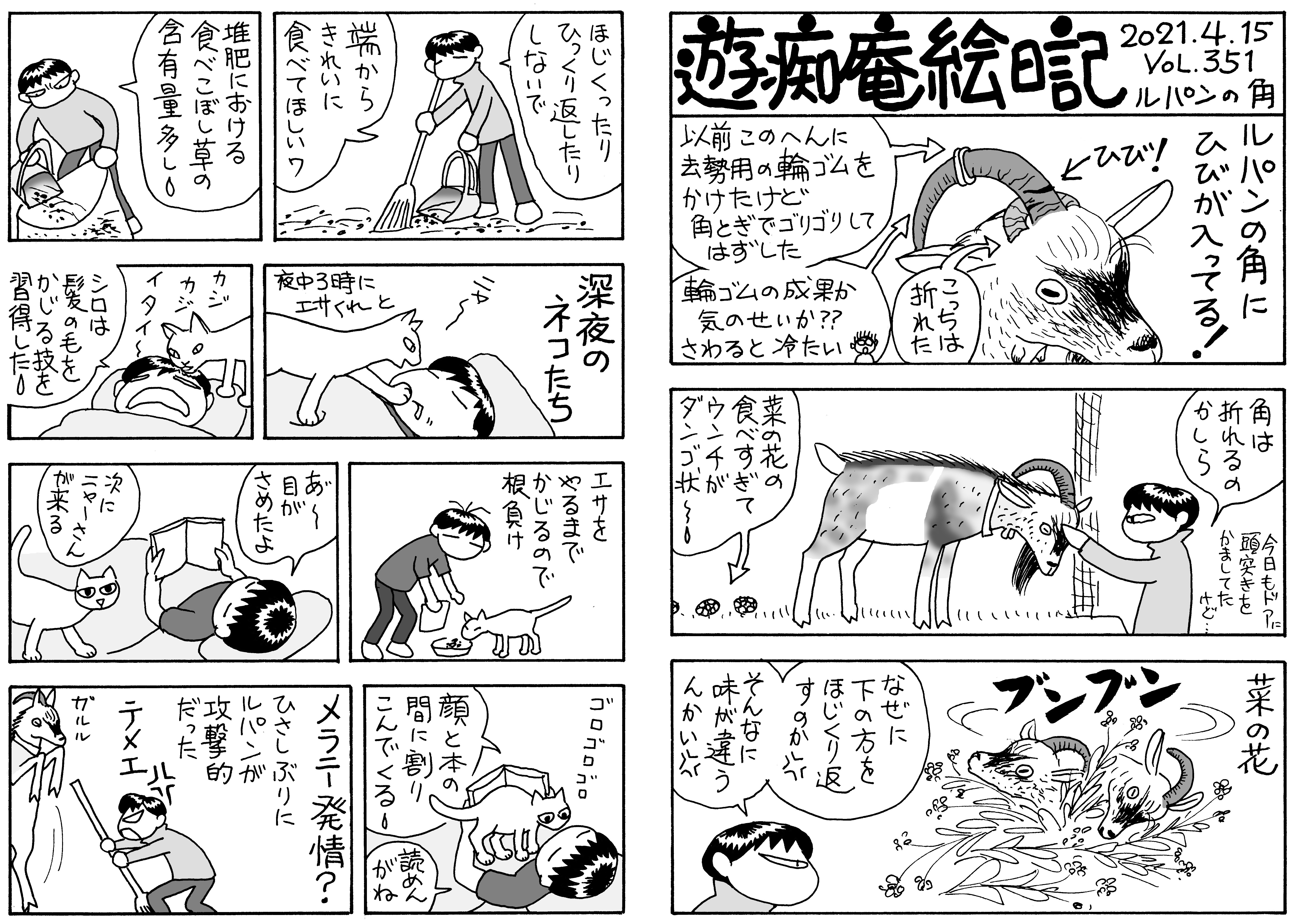 里親さんの希望で除角去勢なし⇒子ヤギに角が生えるのを間近に見るのは初めて。角が痒いのかしきりに擦り付けてきて,角を掻いてもらう快感に目覚めた小鬼たちwww ルパンと不二子はコクシジウム。便と薬。