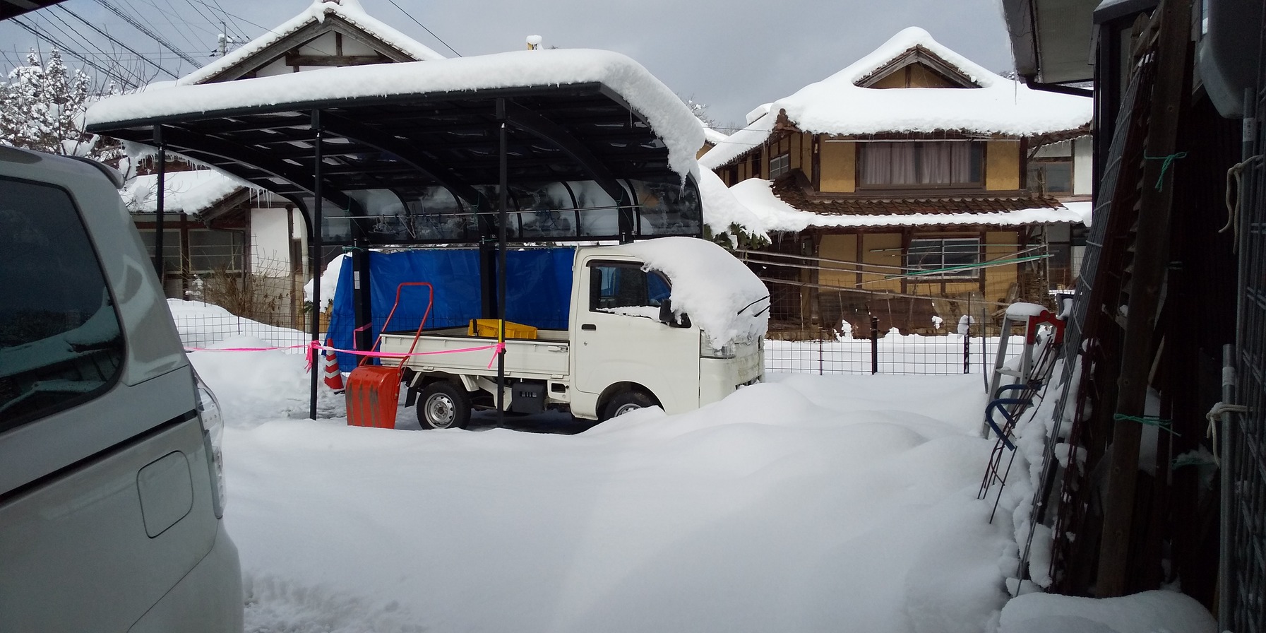 不二子とルパンがいちゃいちゃしている! もしかして発情か? 不二子たん購入元に画像を見てもらって発情らしいと判断。次回の発情のとき種付けに行きます。軽トラ屋根の落雪対策。シートを張りました。