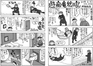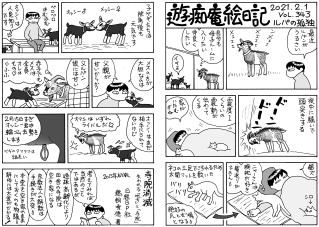 うっすら積雪。ヒマを持て余したルパンは電灯を破壊(-"-)。親父が山羊に竹を与えるのは良いのだが,片付けない。うるさく言ったらやっと片付けに行き,案の定ルパンに攻撃された(笑)。写真…餌に群がる山羊。