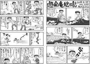 ゴエモンが夜の川に転落。まったく世話が焼けるゴエモンです。川底は石がゴロゴロして足場が悪いし,しかも夜でゴエモンを連れなのでとうとう転んでパンツまでずぶ濡れ。この後もう一度転落しました。