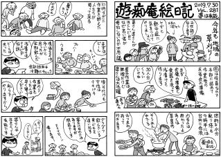 今年も地域の草刈り作業。90歳近い爺さんが刈り払いを使うので冷や冷やします。若い者を出せばいいのに,なぜか爺婆が出てくる不思議。当日参加できなくても前日までに草を刈っている若者もいてエライね!