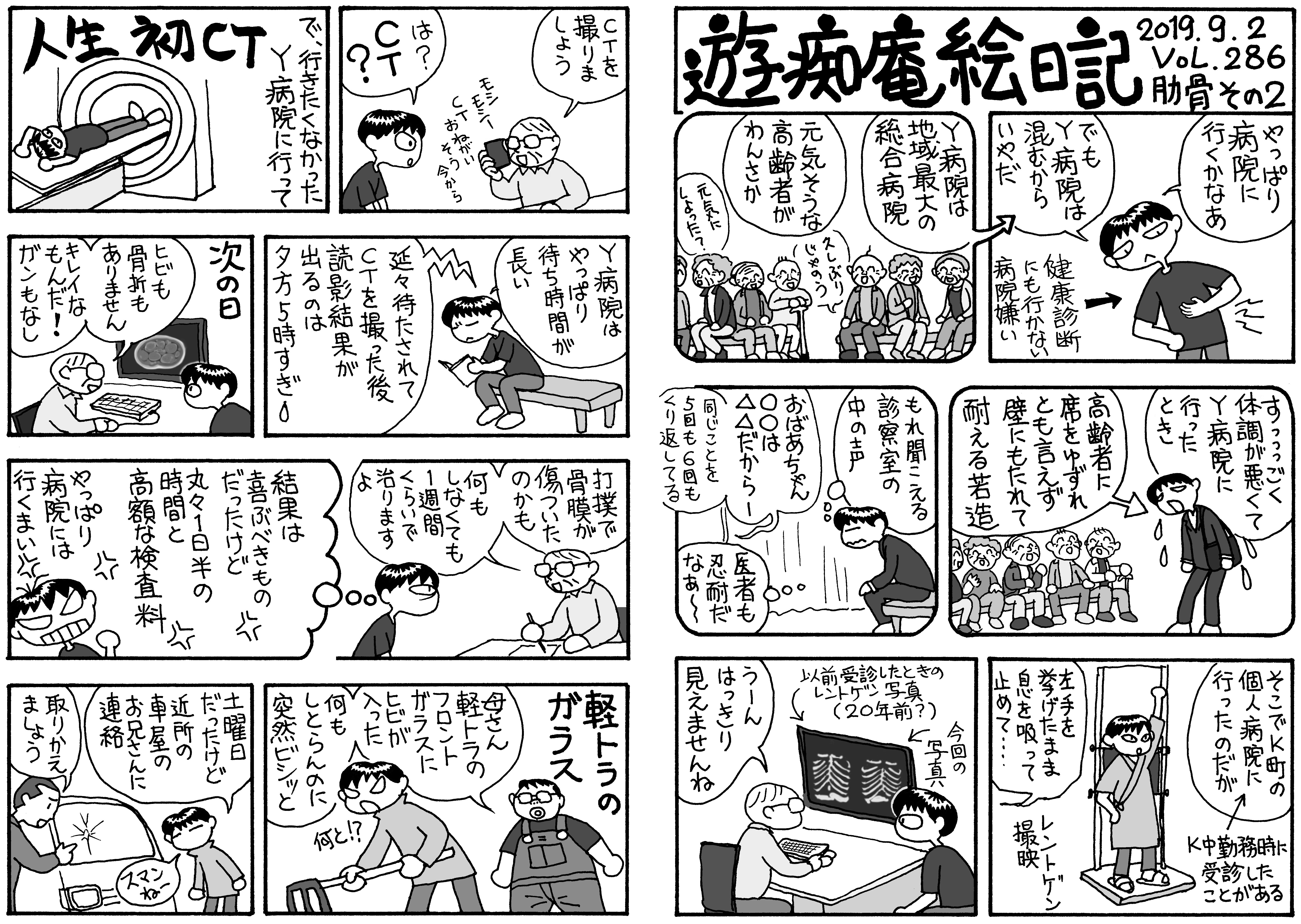 肋骨が痛い。病院はキライだけどみんなが心配するので受診した。一日半の時間と一万円弱の費用を投じて得た診断は「ヒビも骨折もなし。ほっといたら一週間くらいで治ります」。 キーッ! 時間と金を返せ!