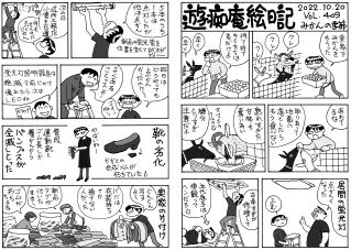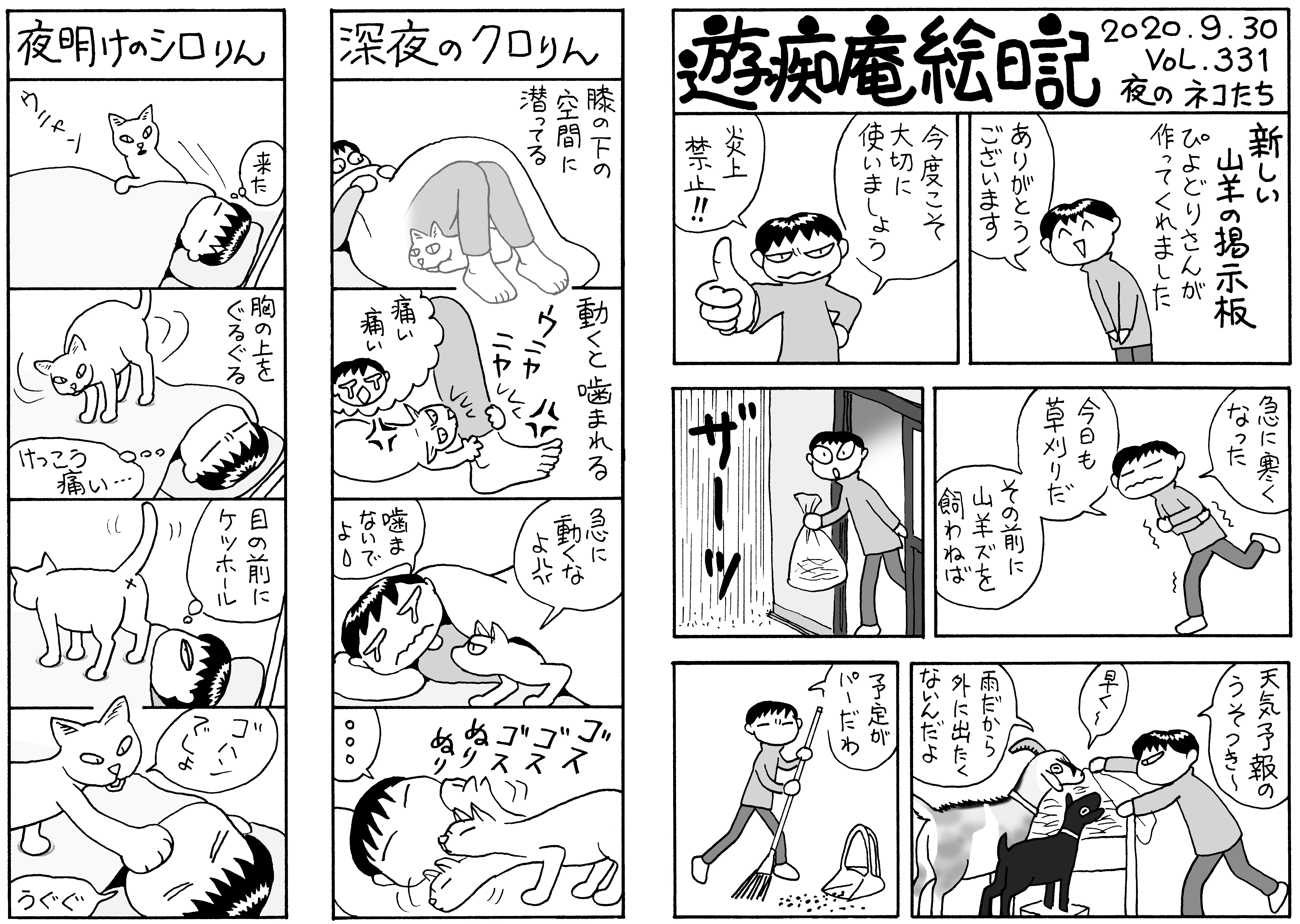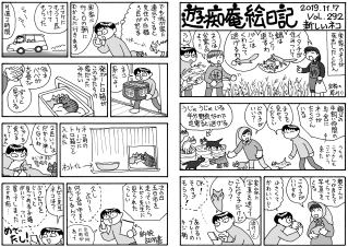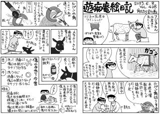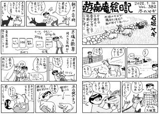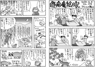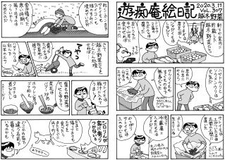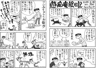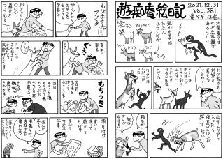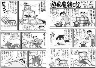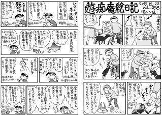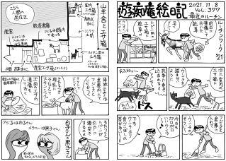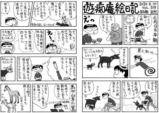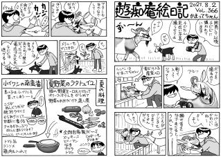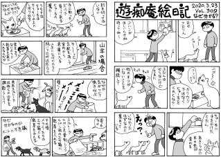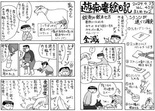 毛モノたちは,好物の気配を鋭く察知する超能力がある。音や匂いや飼主の態度などで分かるのだろうけどスゴイ! ここでお知らせ。309号までで絵日記の2冊目を製本しようと思っています。乞うご期待。