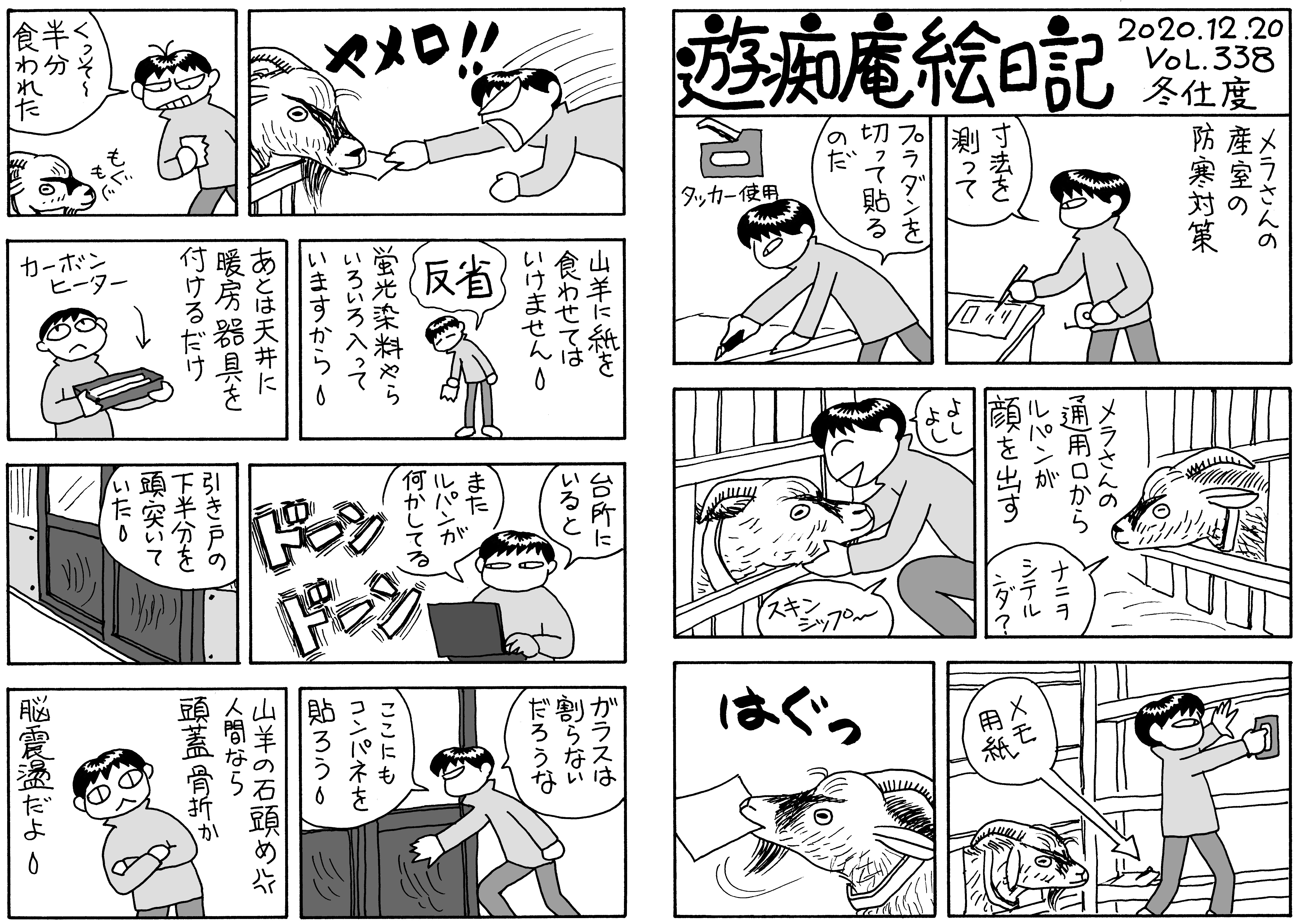 気がつけば師走。本格的な冬に備えてタイヤ交換。タイヤを収納している物置はヤギの運動場の中にあるのでルパンをつなぐところから始まります。メス二匹は道路に出て道草を食っています。山羊舎の雪囲いも。