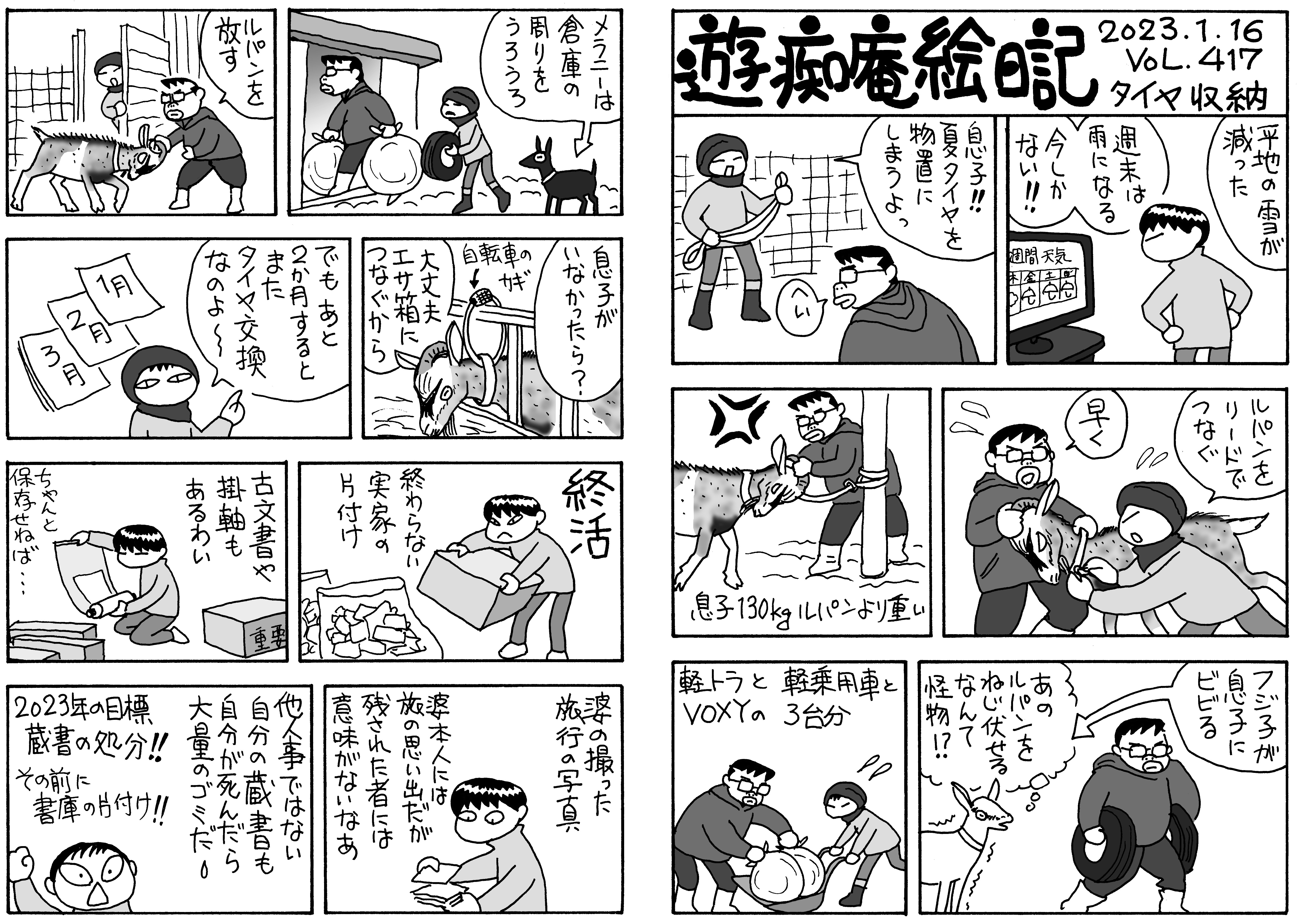 雪が減ったので夏タイヤを物置に収納しました。物置はヤギ運動場内なのでルパンを繫留します。放牧地の雪も減り,ヤギゥ一族は石垣のそばで日向ぼっこ。2023年の目標「自分の終活…蔵書を処分する」やるよ!
